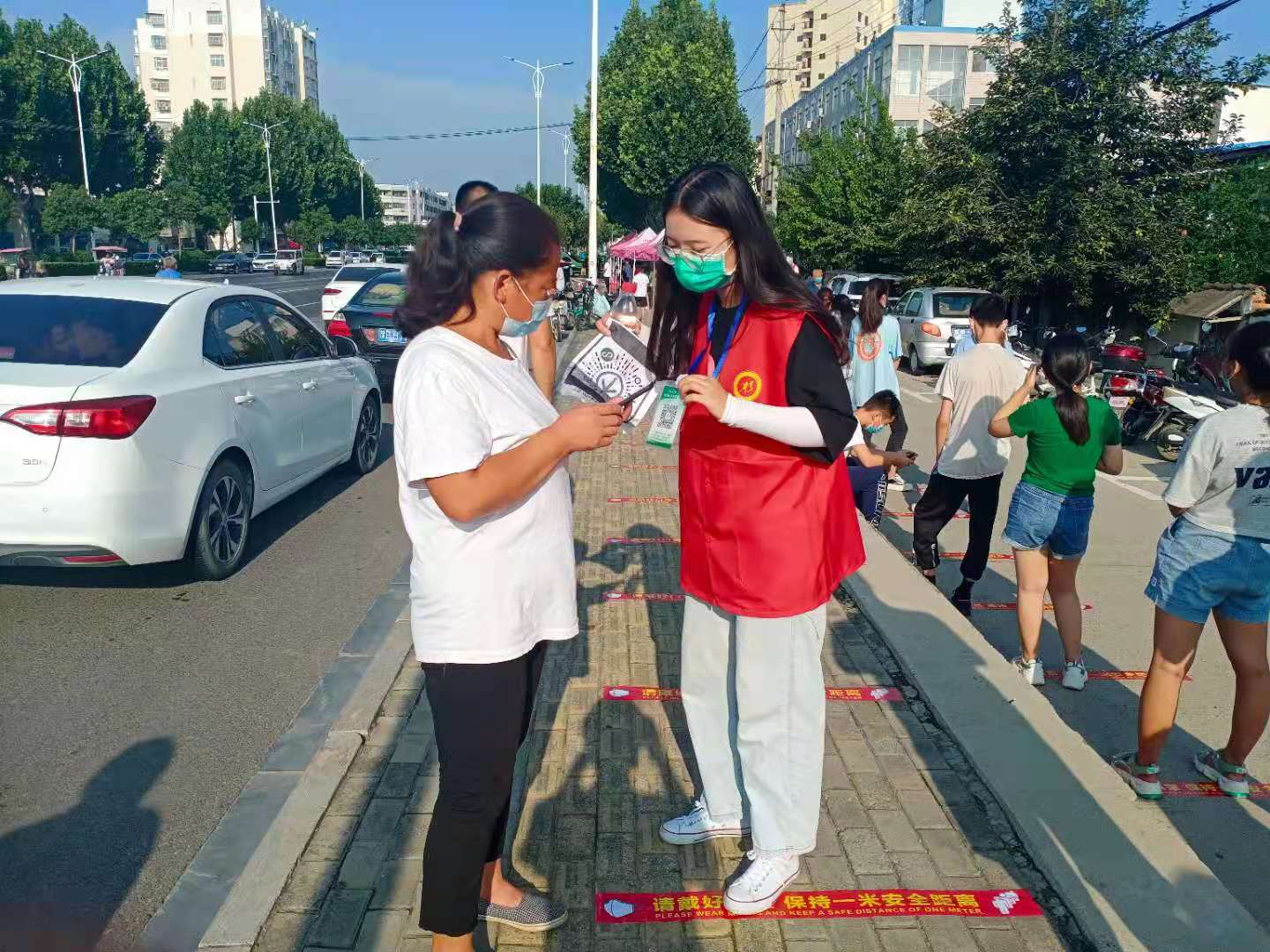 在三川社工疫情防控队伍中,还有这样一名少年,利用暑期的休息时间,和身为义工的妈妈一起在核酸检测点战“疫”。在人群中,他穿着红马甲,一遍遍提醒现场群众有序排队、戴好口罩,耐心帮助不会操作的老人完成信息采集、扫码登记。红马甲湿了又干,嗓子又干又燥,但是他没有丝毫退缩,一直坚守到核酸检测全部结束。