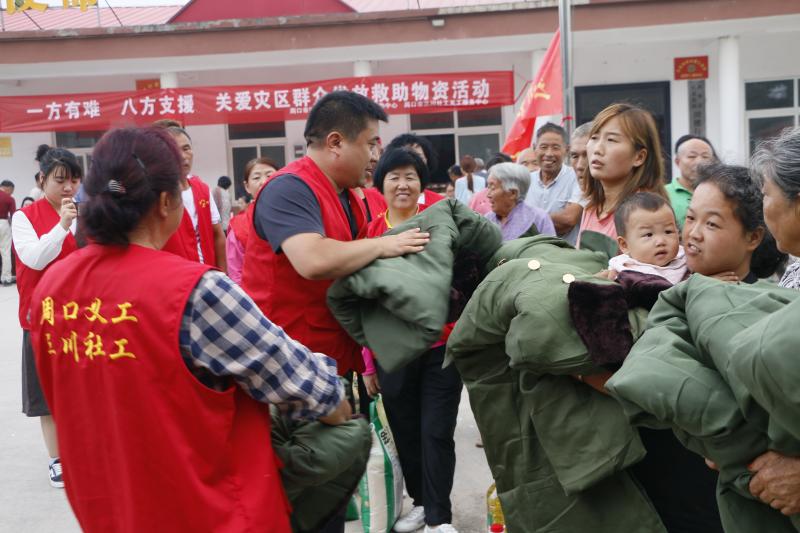 去年7月底,面对来势汹汹的雨情汛情,三川社工迅速反应,立即组建了由60名社工、义工组成的防汛救灾突击队,连续10天在贾鲁河沿岸3个村庄和二板桥段开展防汛值守;组织40名社工、义工装卸防汛救灾物资,向川汇区、西华县、扶沟县30多个防汛值守点和居民安置点运送食物和救灾物资。
