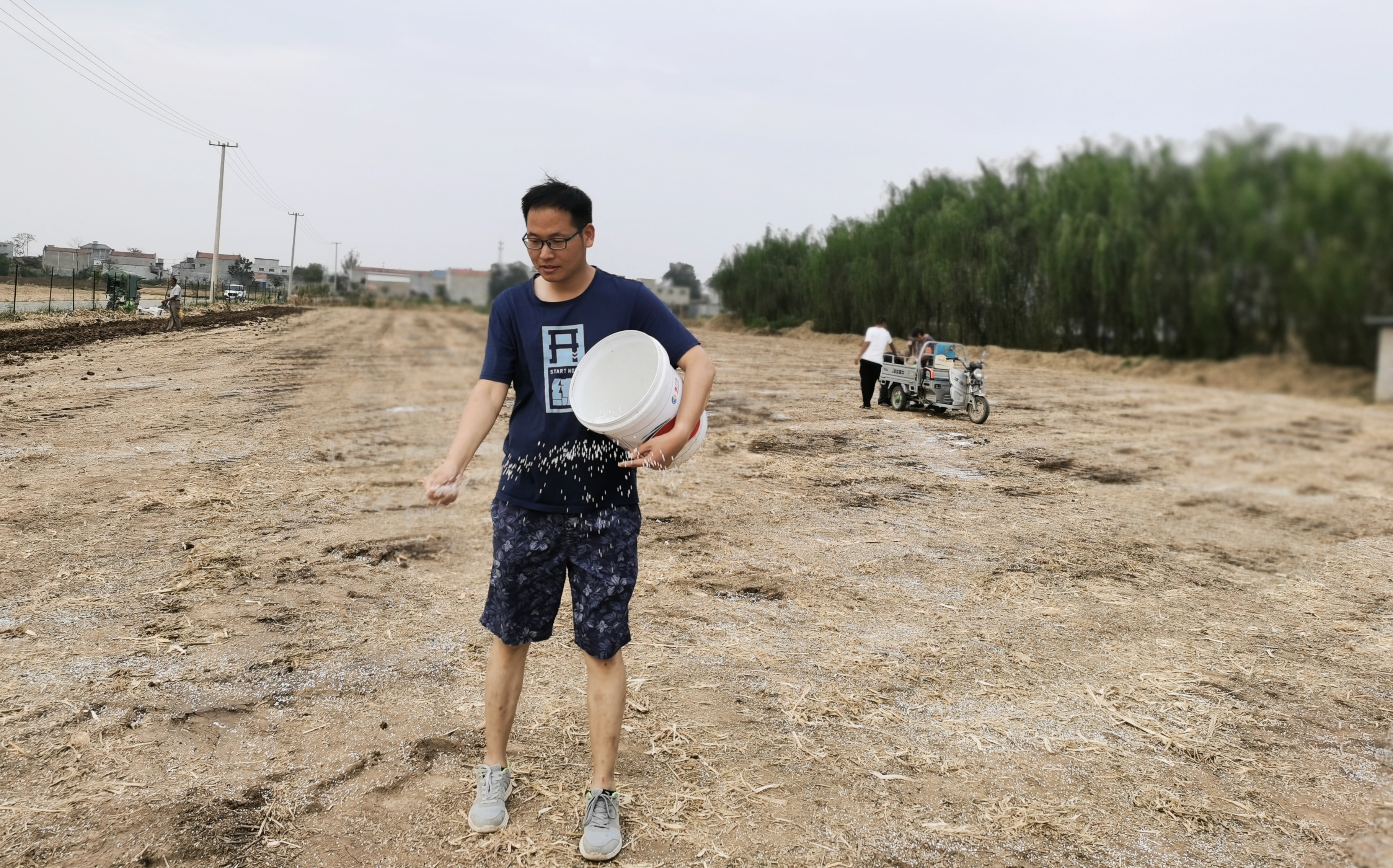 (资料图片:秦科志为田地施肥)
