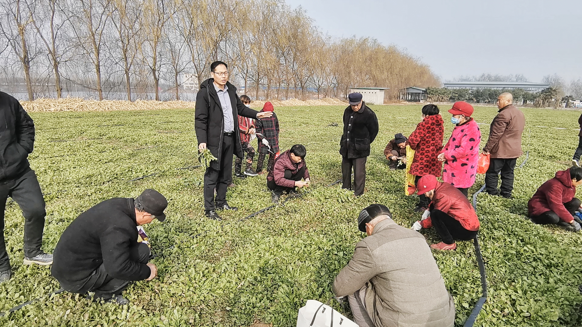 2021年12月15日,在经过2个多月的生长后,荠菜终于成熟了。这一天,秦科志请了村里的30多名群众前来挖荠菜,并每斤给出了4毛钱的工钱。
