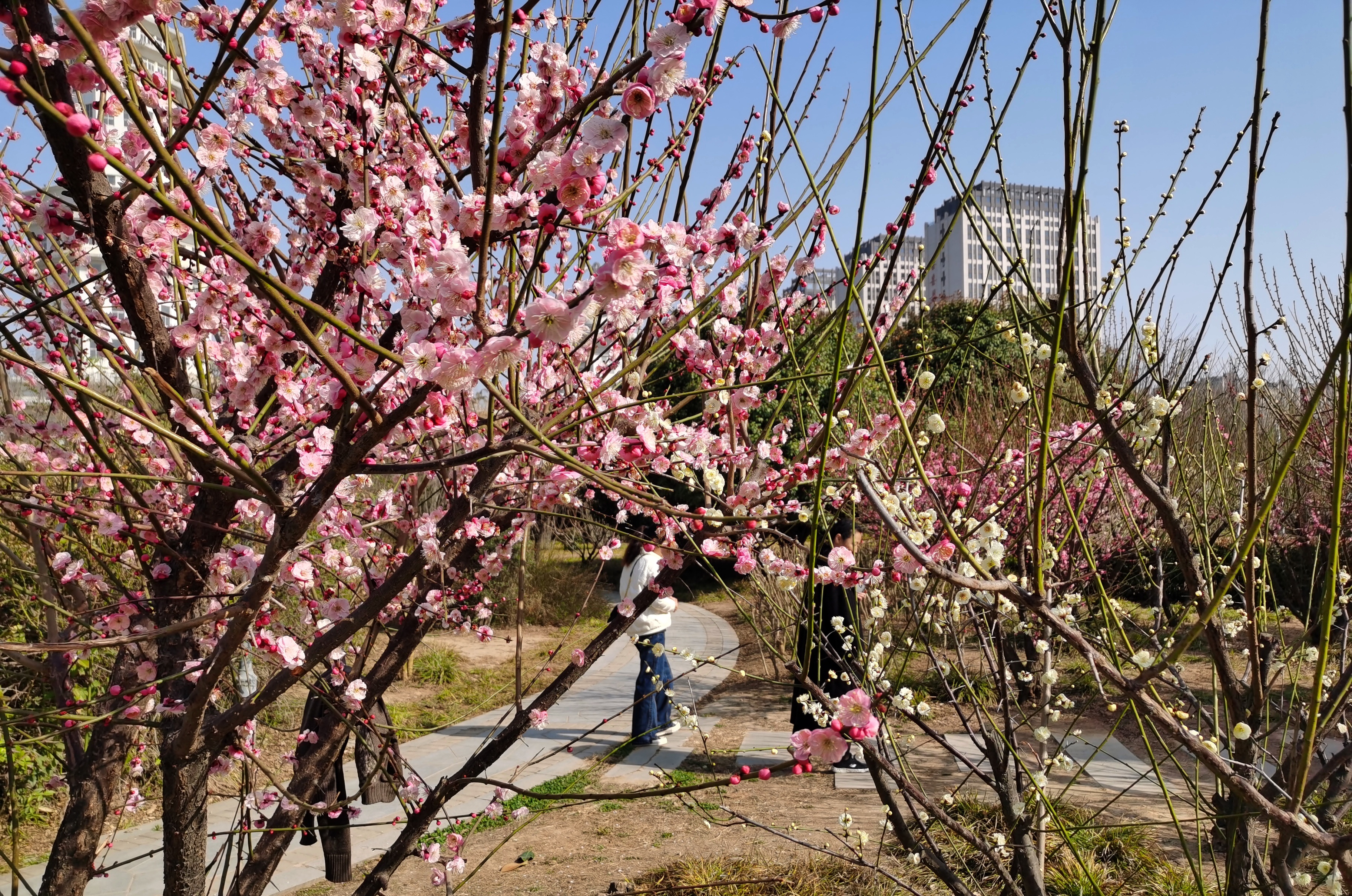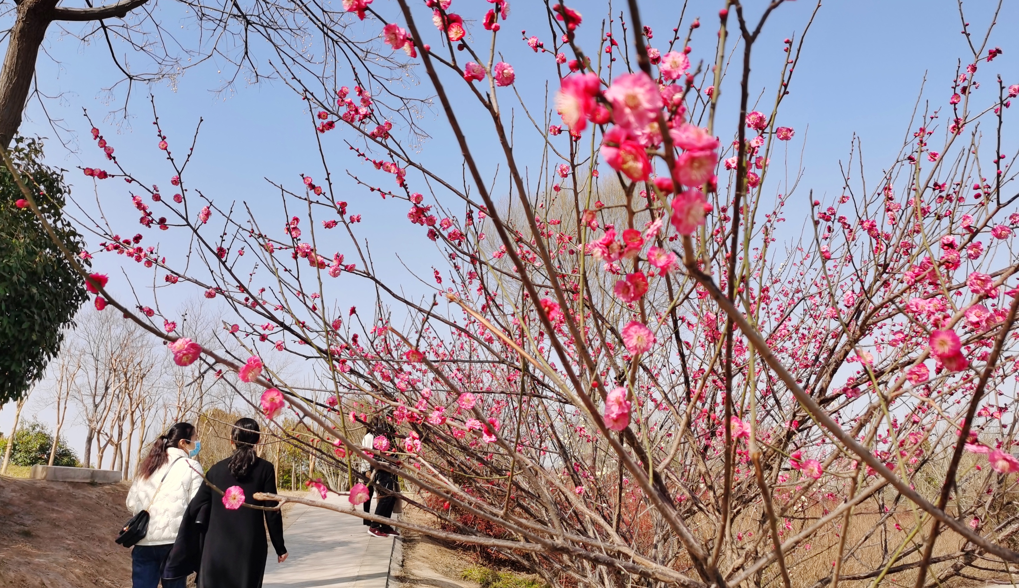 近日,周口天气晴好,周口公园内梅花竞相开放,暗香浮动,吸引市民纷纷前来观赏拍照。记者 孙安平 摄