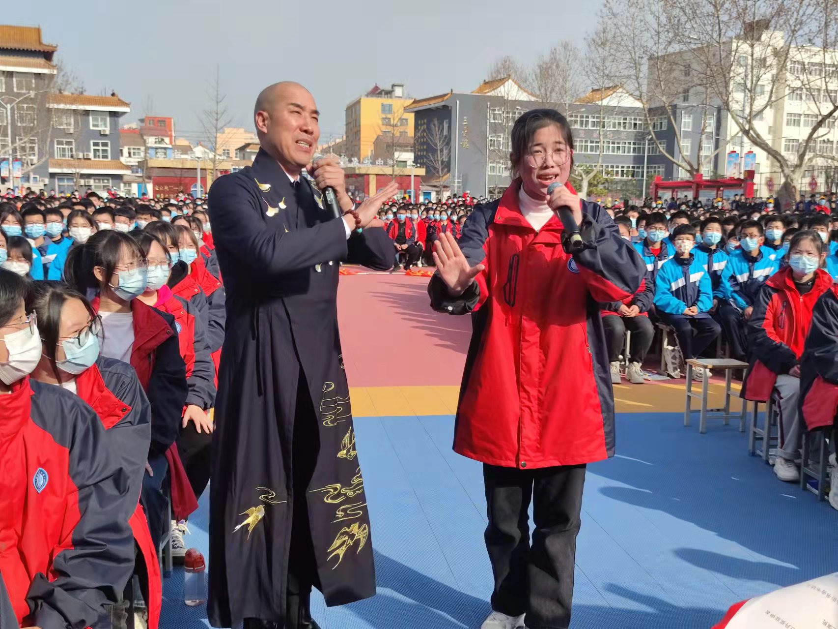 “四千岁你莫要羞愧难当,听山人把情由细说端详。唱得真好,现在我也唱两句,想当年长坂坡你有名上将……”河南省曲协副主席、中国曲艺牡丹奖获得者白军选与淮阳中学学生的互动,让现场响起雷鸣般的掌声。