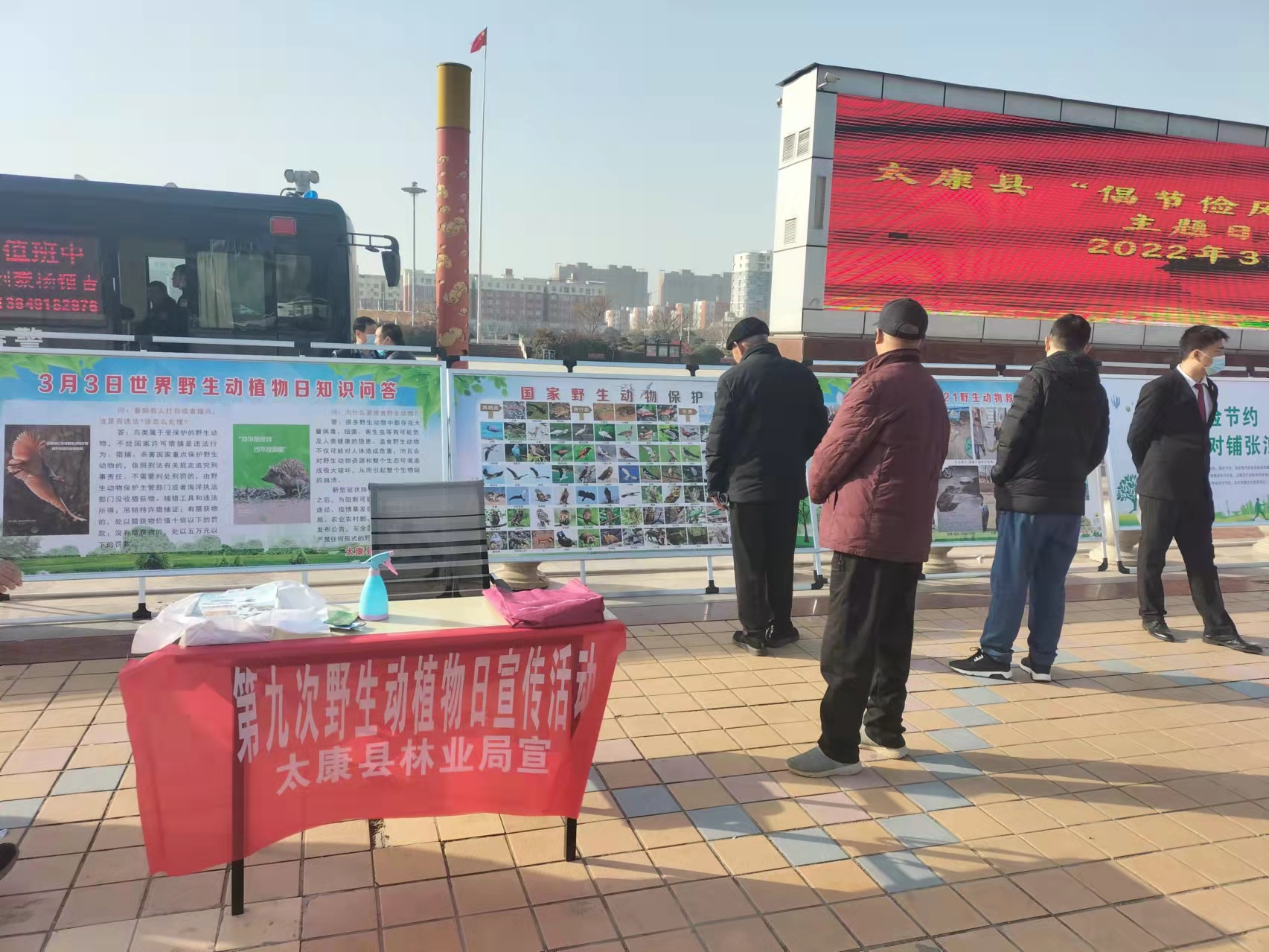3月3日,太康县林业局在县人民广场开展“世界野生动物植物日”宣传活动,通过设立展板、发放宣传彩页、现场讲解等形式向群众宣传保护野生动植物的重要性。