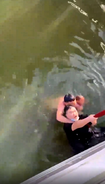 3月3日下午4时20分,正在周口市淮阳区龙湖风景区内陪孩子游玩的方岩,突然听到远处传来了求救声。循声望去,只见一名女子在桥边大喊大叫,周围群众乱成一片,2名男子爬上围栏,准备往湖里跳……