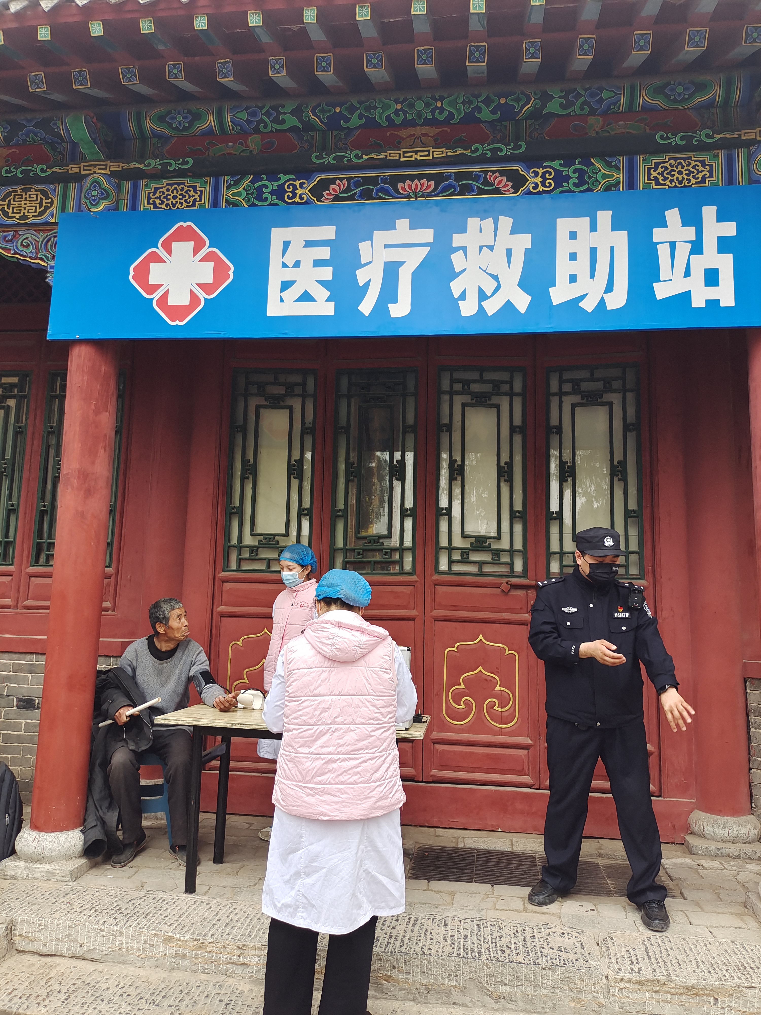 量血压的姑娘叫苏圆圆,据她介绍,全淮阳20多家医院都派人在太昊陵各处设置“医疗救助站”,游客有任何不舒服可就近询问观察,各站都配有应急药箱,如有需要免费使用。“这段时间人流量大,大家一定要遵守各项安全措施,避免意外发生。”苏圆圆说。