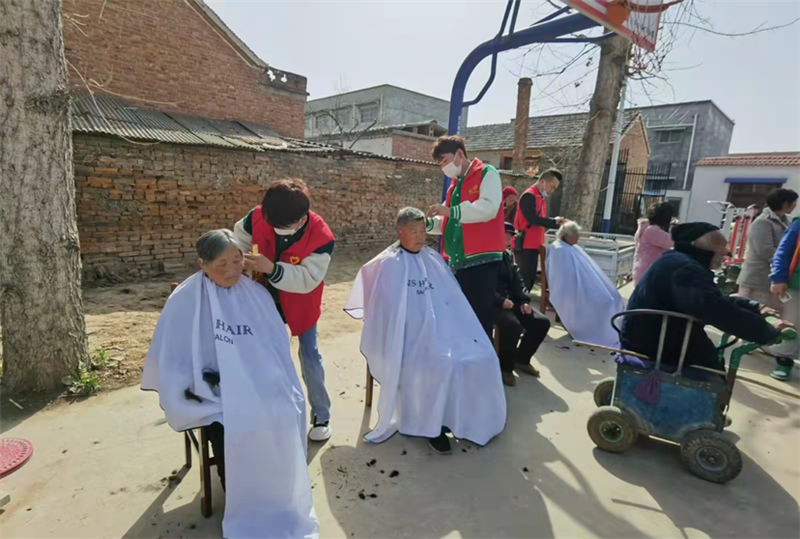 在李方口村,志愿者带领少年儿童在村文化广场诵读经典、做游戏,义务为老人理发。孩子们嘹亮的歌声和诵读声在上空飘扬,老人们则拉起家常,脸上都笑开了花。