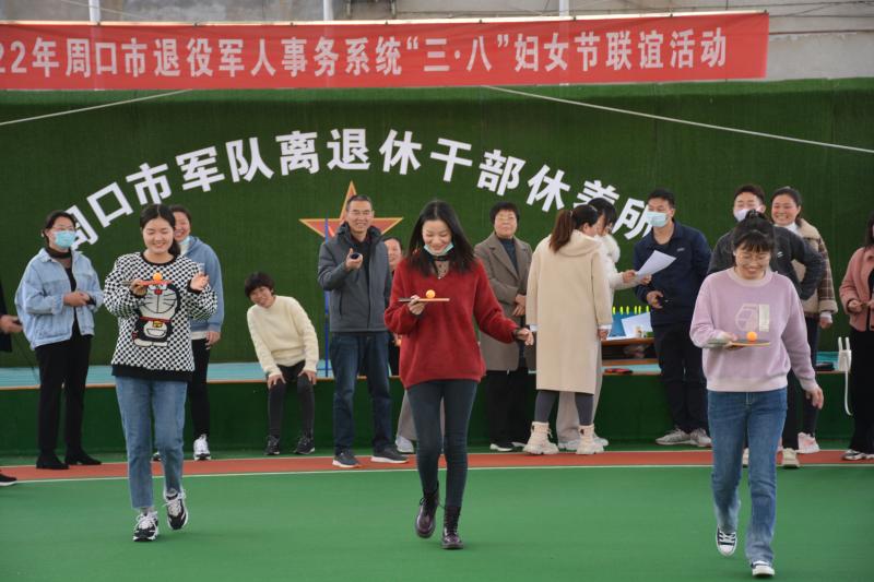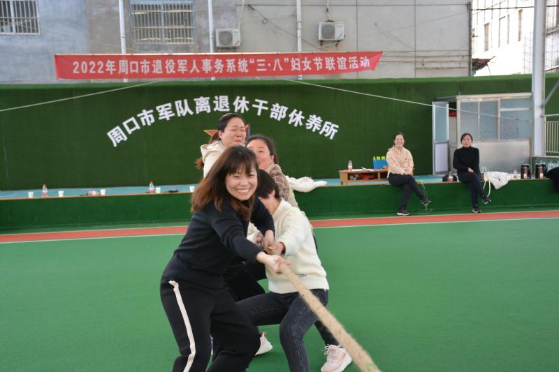 3月7日下午,周口市军干所邀请市退役军人事务局全体女职工,组织开展庆祝“三八”国际劳动妇女节联谊活动并送上慰问品。跳绳、托乒乓球、拔河、羽毛球4项友谊赛让女同胞们乐在其中。③3记者 彭慧 通讯员 王晓会 摄