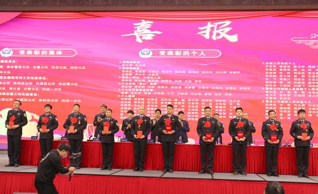 会议宣读了《关于对2021年度立功受奖集体和个人的表彰决定》,对先进单位、先进个人及荣获各项嘉奖的民辅警进行了表彰;先进单位代表进行了典型发言。