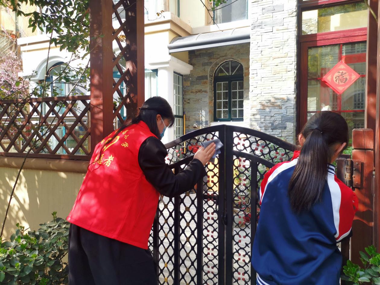 精彩纷呈的节目之后,师生们又深入社区进行志愿服务活动。活动中,师生们个个争先恐后,有的进行卫生清扫,有的擦拭健身器材,有的则摆放起了电动车,有的与社区工作人员进行座谈,活动现场其乐融融。
