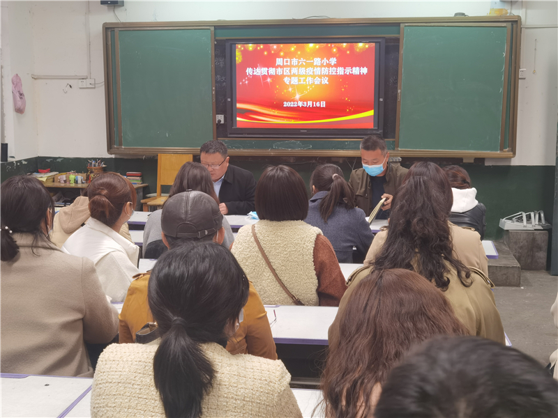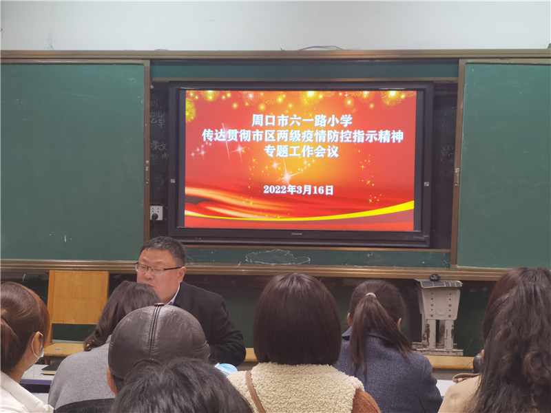 为强化学校疫情防控主体责任,坚持人物同防、多病共防,落实“四早”防控措施,精准防控,坚决防止疫情输入校园,保障广大师生的身体健康和生命安全,确保学校正常的教育教学秩序,3月16日下午放学后,周口市六一路小学组织召开疫情防控工作会,向全体教师传达市、区疫情防控工作会议精神。
