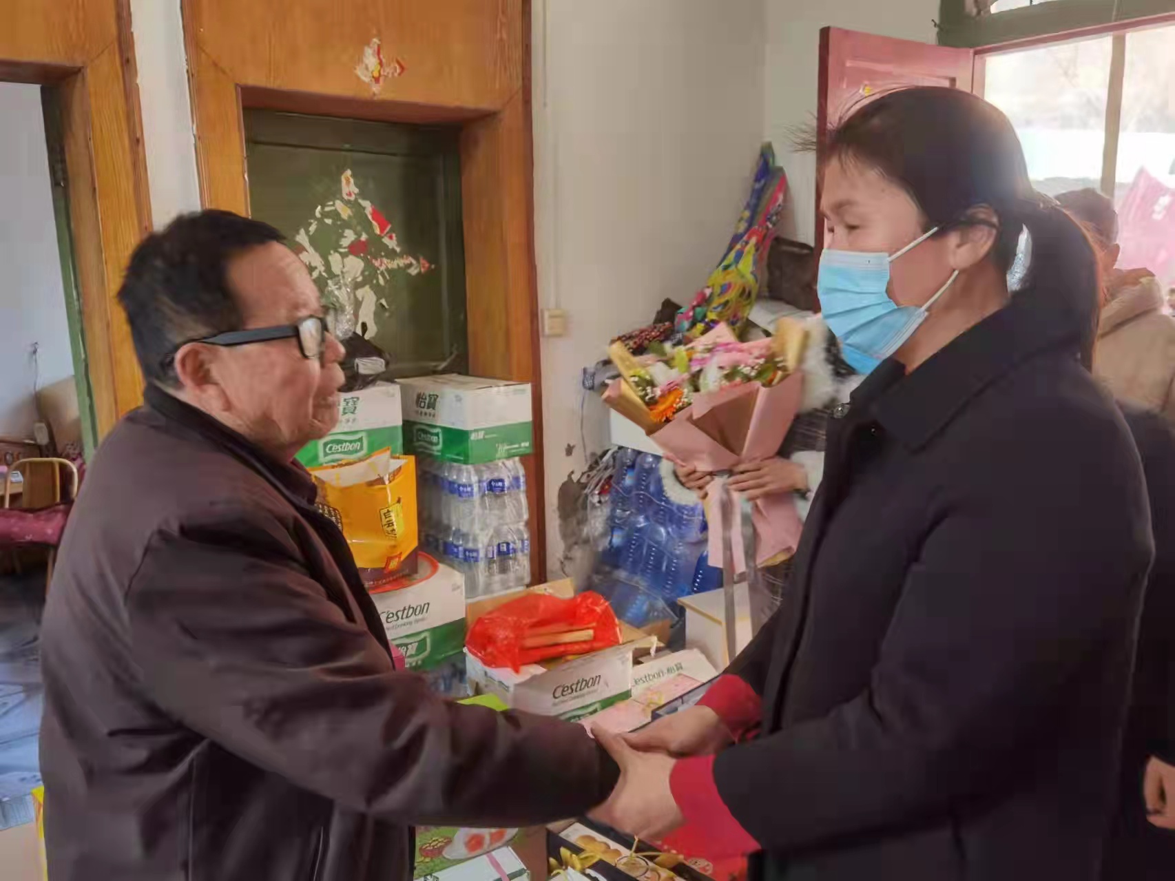 3月19日,项城市妇联组织巾帼志愿者对援吉流调队员王春霞的父亲王怀栋进行慰问。