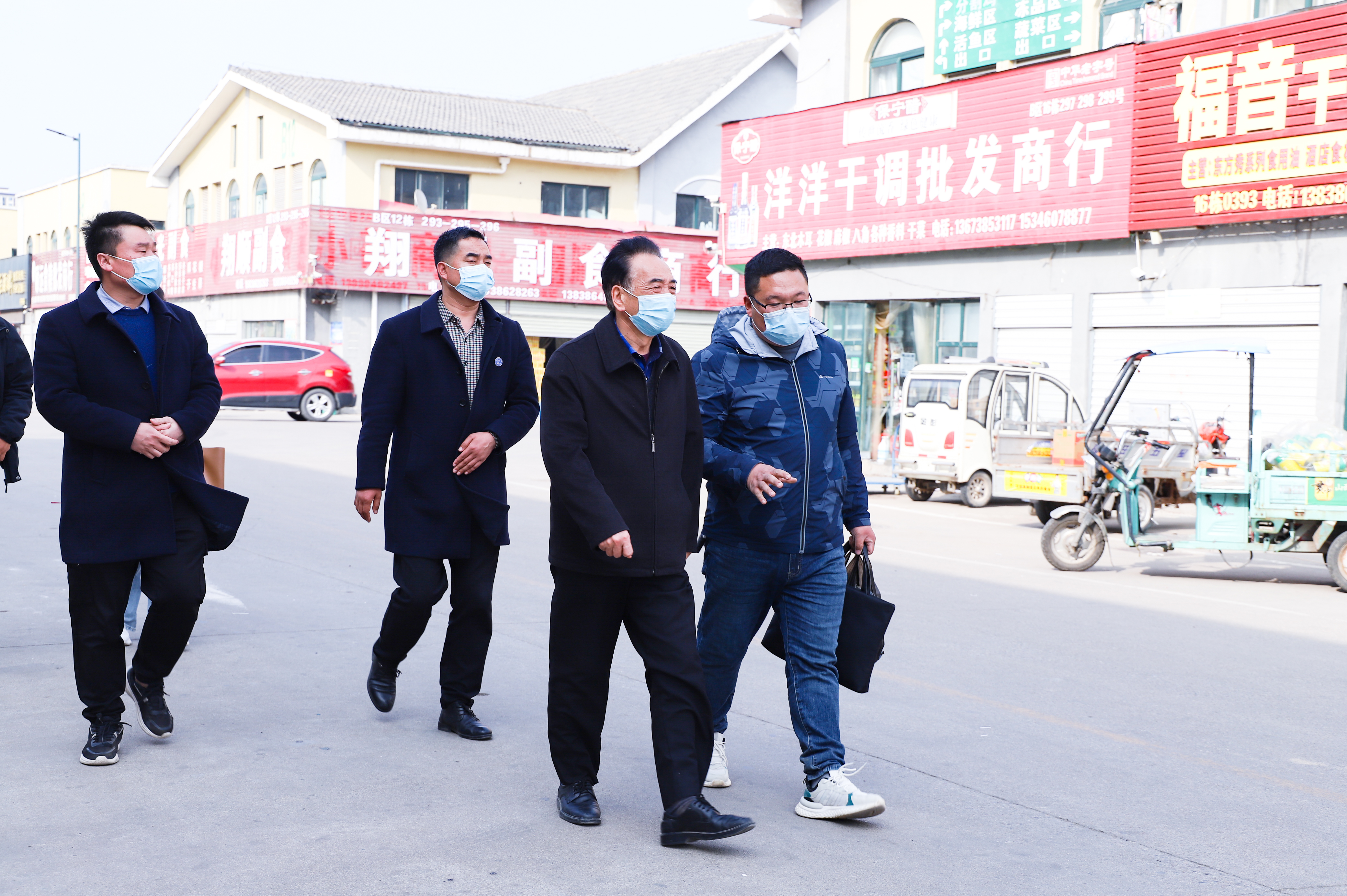 根据餐饮窗口和教师餐厅提供的菜品进货渠道,检查组驱车专程来到黄淮大市场,在供货人带领下分别到门市部和摊位察看了他们的经营许可证、健康证,菜品产地检疫、检验证明,详细了解了菜品产地收装、运输过程中的消杀情况。