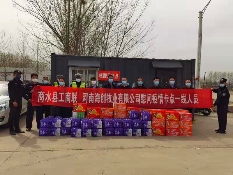 县渔网渔具行业商会、海创牧业、亿家福连锁商超、亚龙国际、峰飞酒业等民营企业及商会成员,先后到该县4个高速出入口卡点、4个省道卡点、3个国道卡点及县交警大队疫情防控执勤卡点进行慰问。