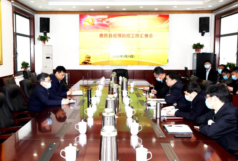 3月29日上午,市委常委皇甫立新莅鹿调研疫情防控工作,并在鹿邑县委常委会议室召开疫情防控工作汇报会。李刚、郭俊涛、孙自豪、史凯歌、谷长征等县处级领导出席汇报会。