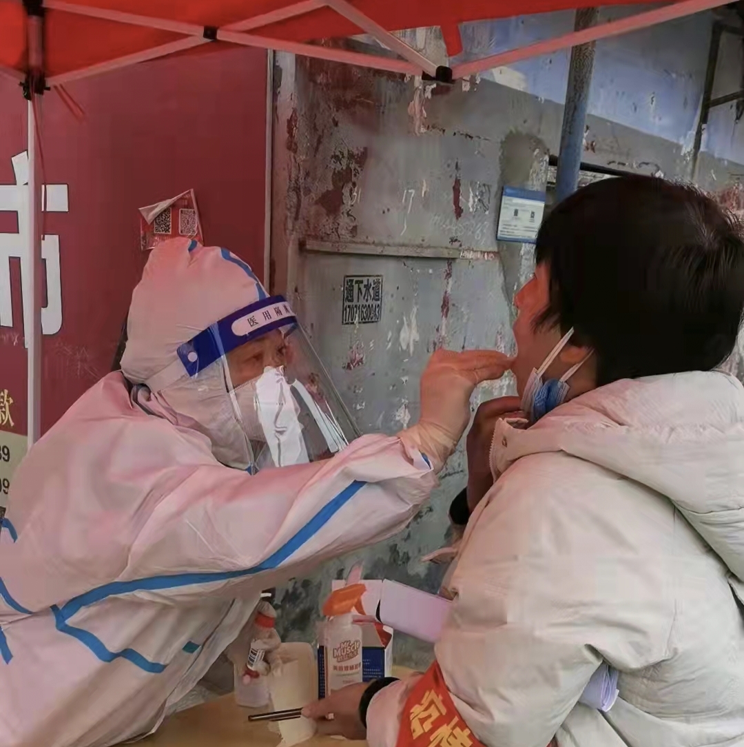 在高雷坚守西华“西大门”的同时,他的妻子孔淑珍也奋战在周口中心城区、太康县、西华县核酸检测现场。