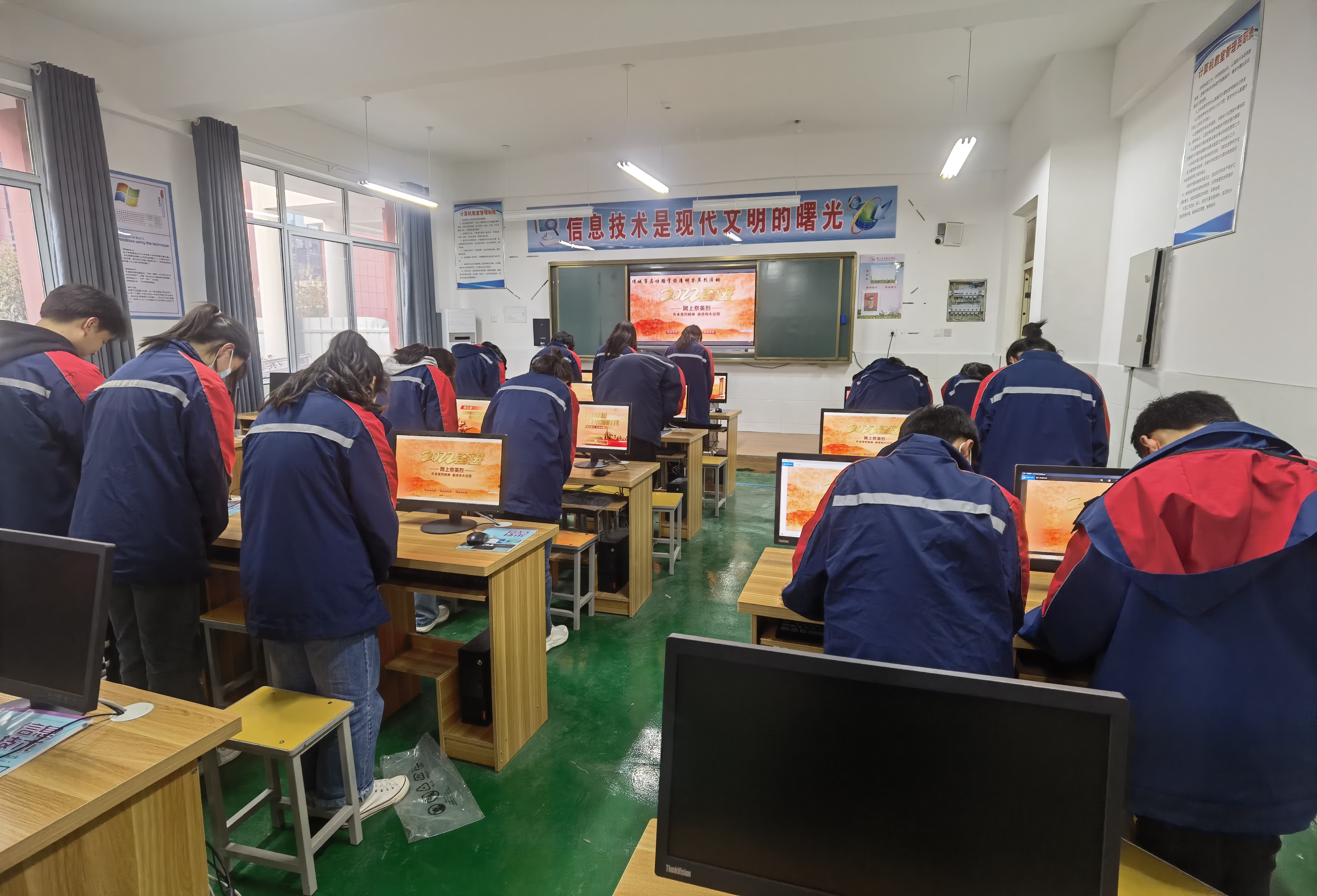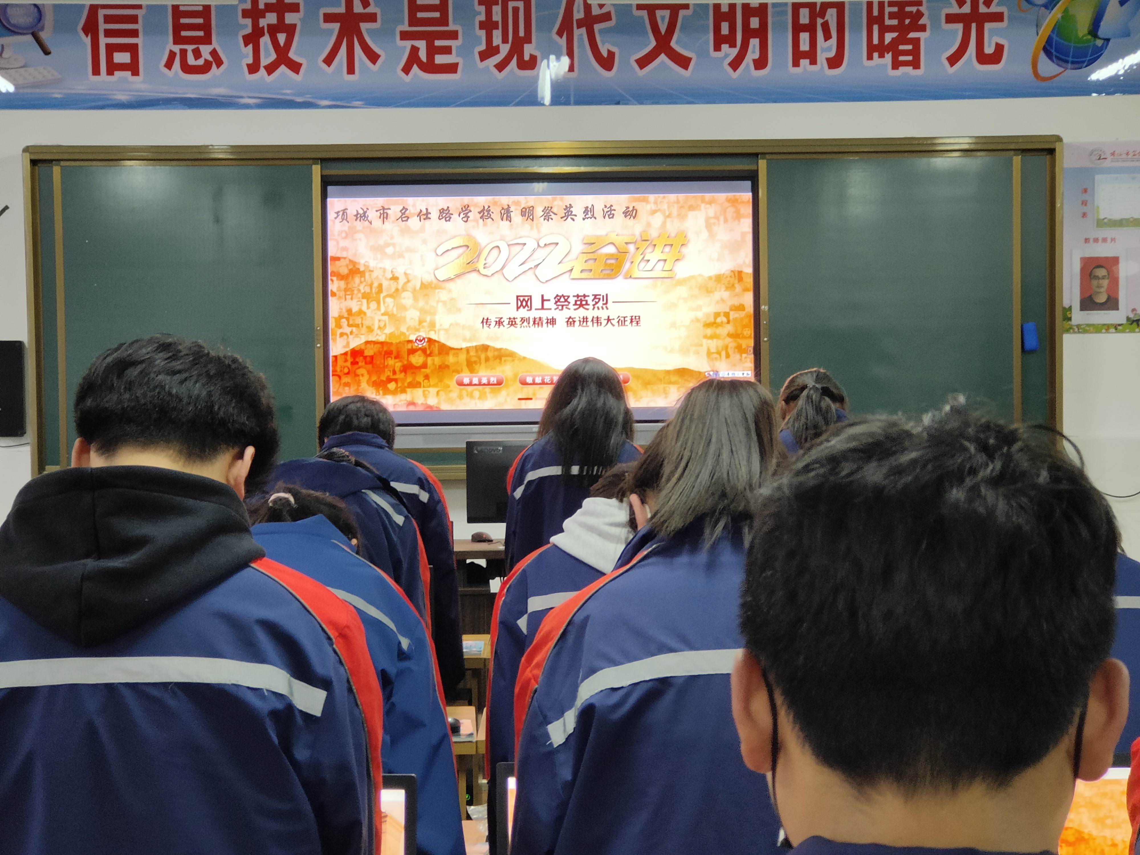 课堂上,在老师的指导下,同学们打开《中华英烈网》,为自己心目中的英雄点烛、献花,“缅怀英烈,感恩祖国。”“如今山河已无恙,烈士们安息吧!”“请党放心,强国有我。”……同学们纷纷留言表示,要继承革命先烈遗志,努力学习,报效祖国。③8