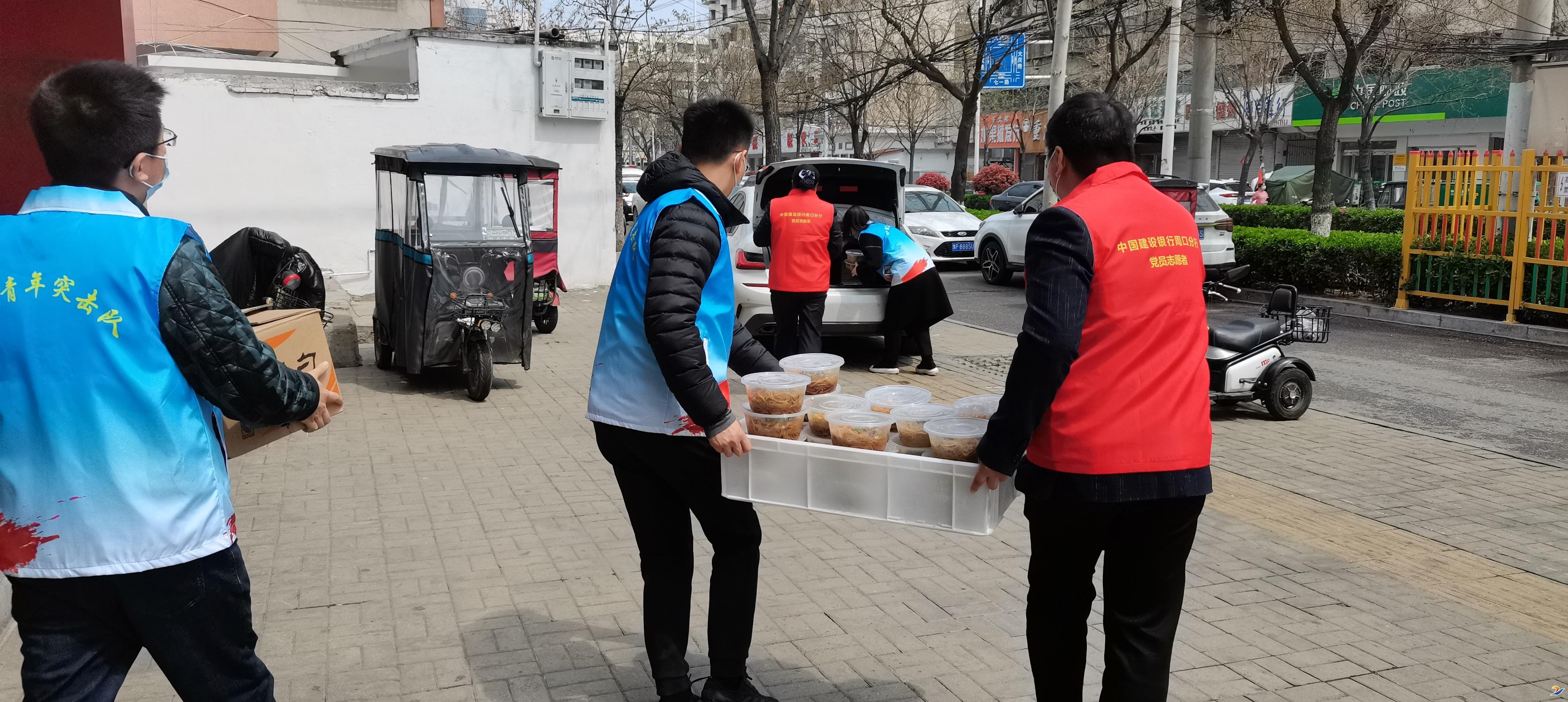 4月1日中午,在市区孙记sa汤门店,建行周口分行豫建青年突击队的成员和党员志愿者们正忙着把刚做好的蒸饺、香肠、热干面等分装打包,放进保温箱,然后统一送到疫情防控卡点。同时,为保证送餐安全,从做餐、送餐,整个流程都进行了严格的检测和消毒,确保一线抗疫人员吃到放心食物。
