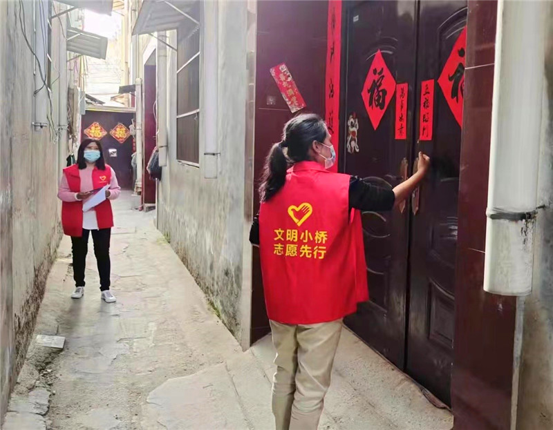 小桥街道办事处紧紧围绕“外防输入、内防扩散”要求,从最小作战单元入手,形成联防联控、群防群控机制。在各小区楼栋院落,党员干部、社区工作人员、网格员和青年志愿者充分抓住早、中、晚居民在家的关键时间节点,通过“敲门看、细致查、用心讲”的方式,全面掌握辖区居民及涉疫地区返回人员信息,及时掌握人员流动情况,建立健全疫情防控工作台账,做到全覆盖、无死角,确保疫情防控“不漏一户、不漏一人”。