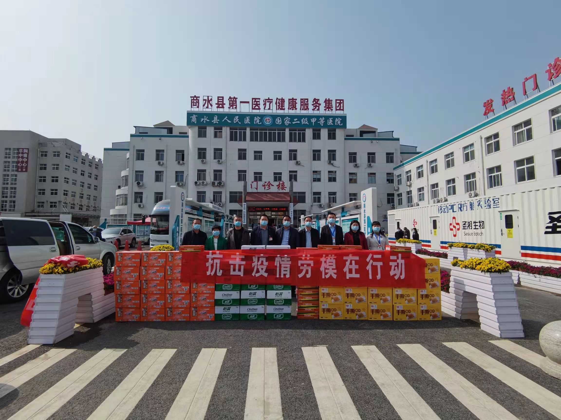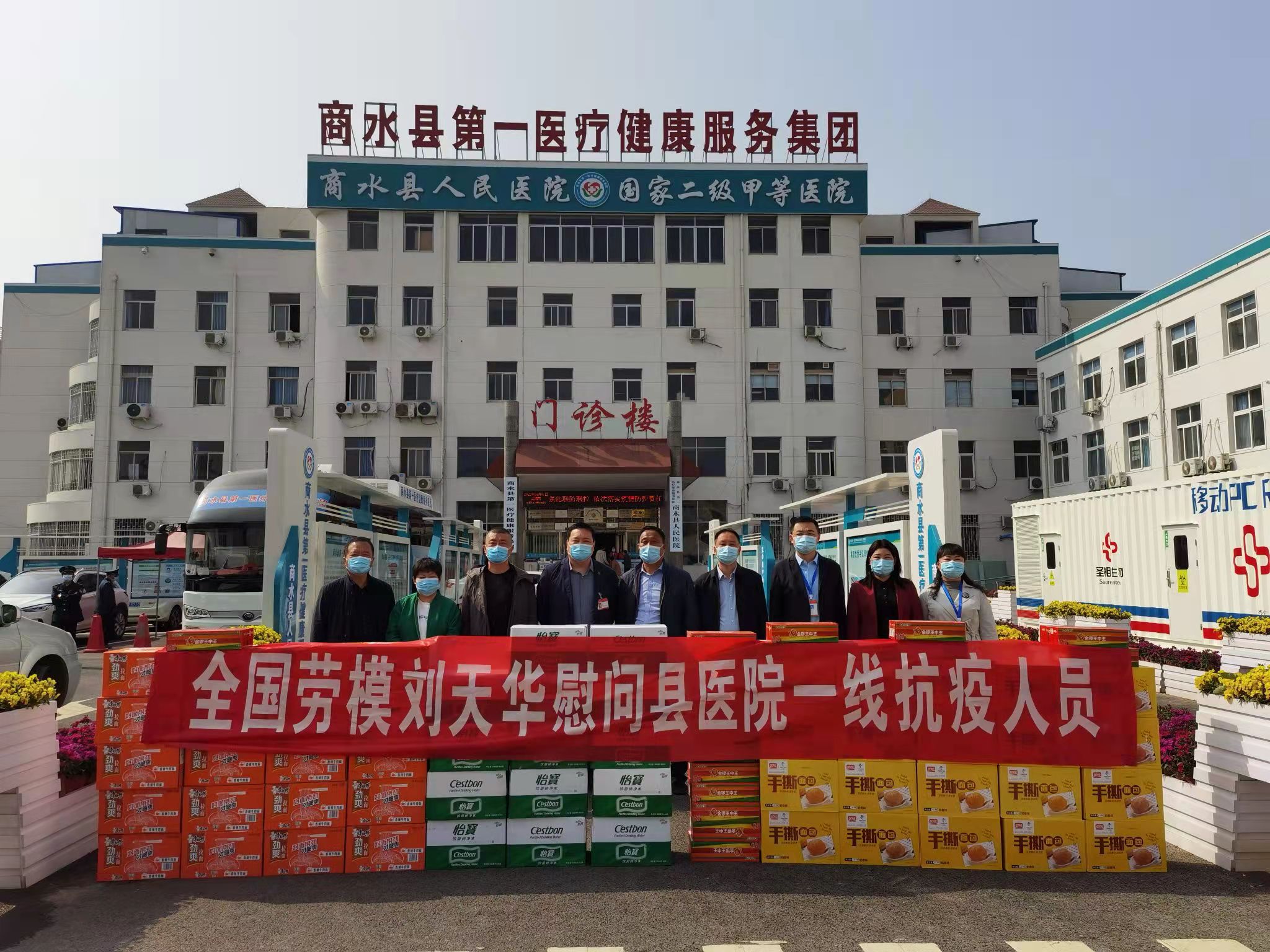 为响应商水县总工会的号召,4月7日,全国劳动模范、省人大代表、商水县天华种植合作社理事长刘天华带着火腿肠、方便面、矿泉水、小面包等慰问品到商水县第一医疗健康服务集团商水县人民医院看望慰问一线抗疫人员,对他们不畏艰险、顾大局、舍小家的无私奉献精神表达敬意。