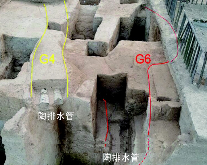上是土丘一片,下有气象万千。在门卫房的门道下,有一条城内高、城外低且上宽下窄的沟渠,沟底铺一条节节相套的陶水管道,其上再并列铺设两条同样规格的陶水管道,形成一个倒“品”字形的管道组合。在南城门东侧的城墙处、长排房靠近中轴线处均有相同管道铺设。周口市博物馆陈列出的一组龙山时期陶排水管道,其上烧制出的花纹神秘美丽。陶管道整体呈直筒状,喇叭形敞口,两端口部粗细不同,腹部微束,有榫口,节节套合。这些陶排水管节节套扣在一起,或纵穿城墙基础,或沿排房建筑的外缘平行分布,两端的进水口和出水口连着水沟,这就是年代最早、最为完备的城市排水系统。
