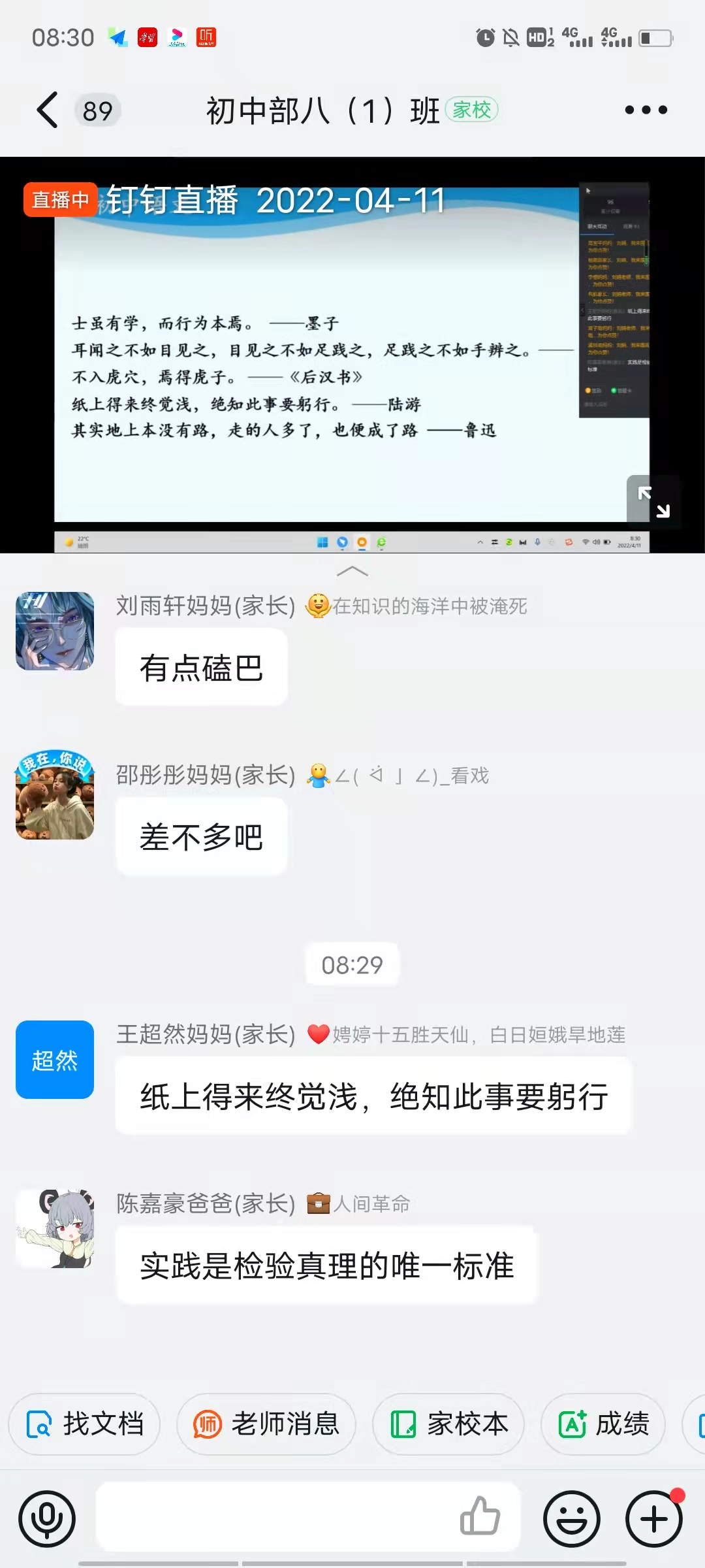 “各位家长,如果您的孩子还没有起床,请尽快叫醒他们进行早读。”自接到“停课不停教,停课不停学”的通知后,每天6时刚过,周口市第二高级中学八一班班主任兼语文老师刘娟便在微信班级群、钉钉班级群发布上课温馨提示,提醒家长关注学生学习状况。