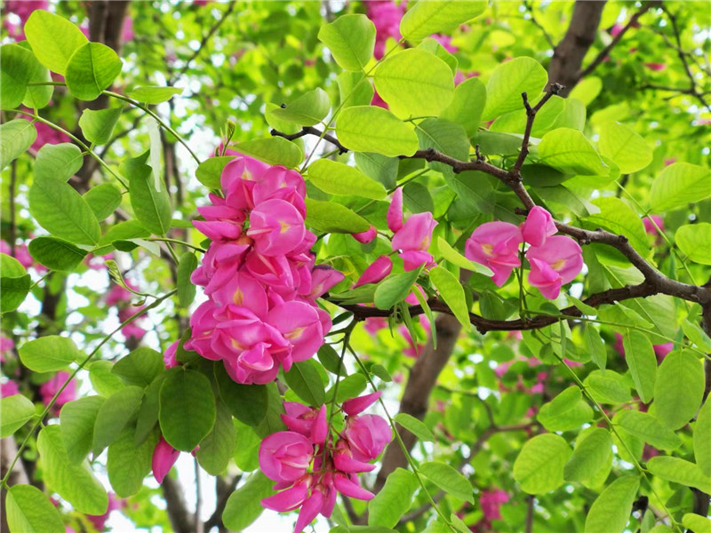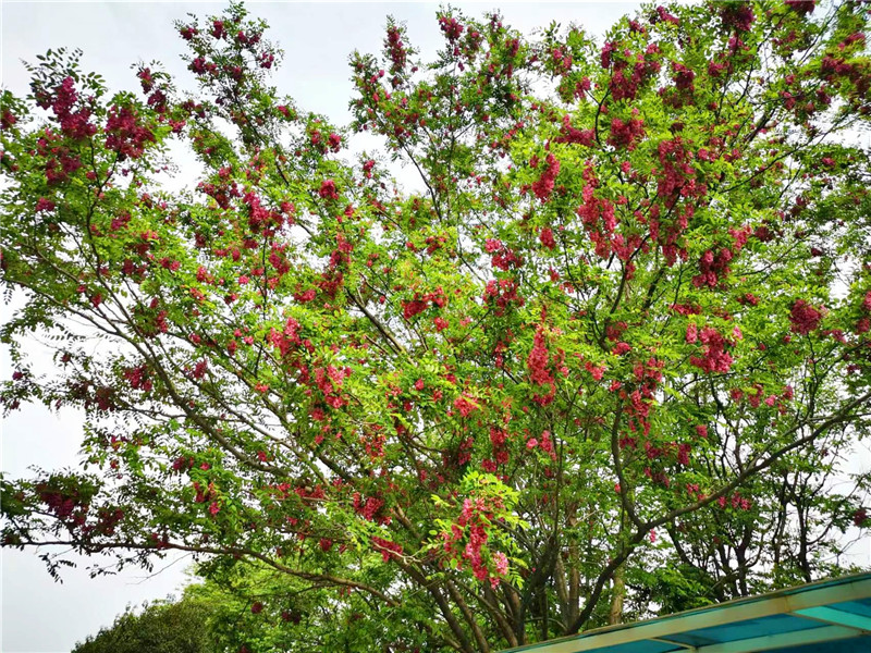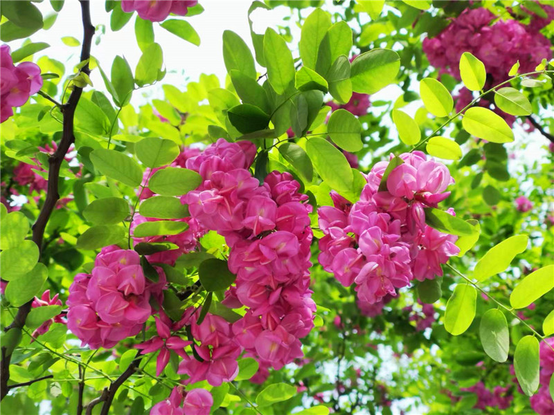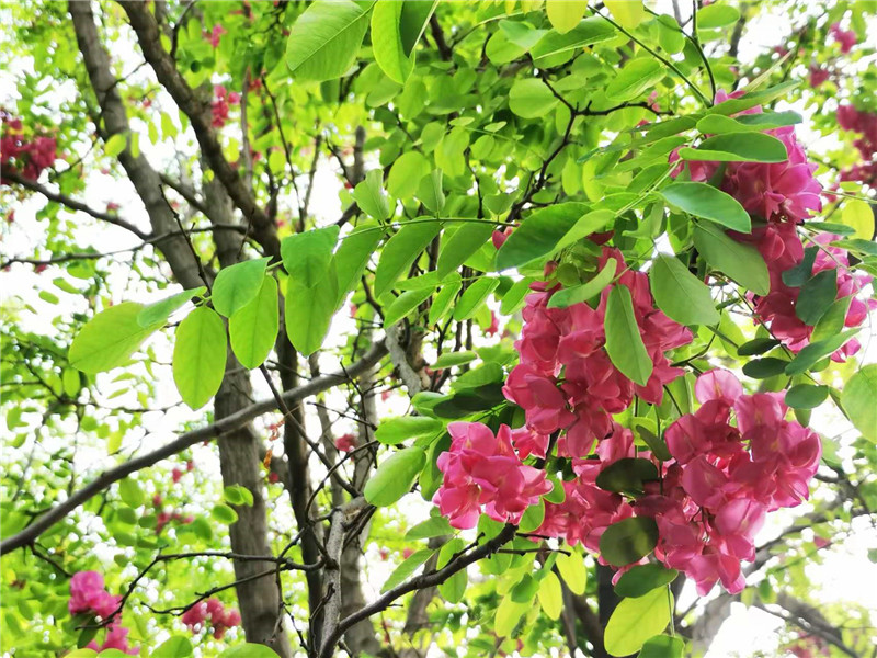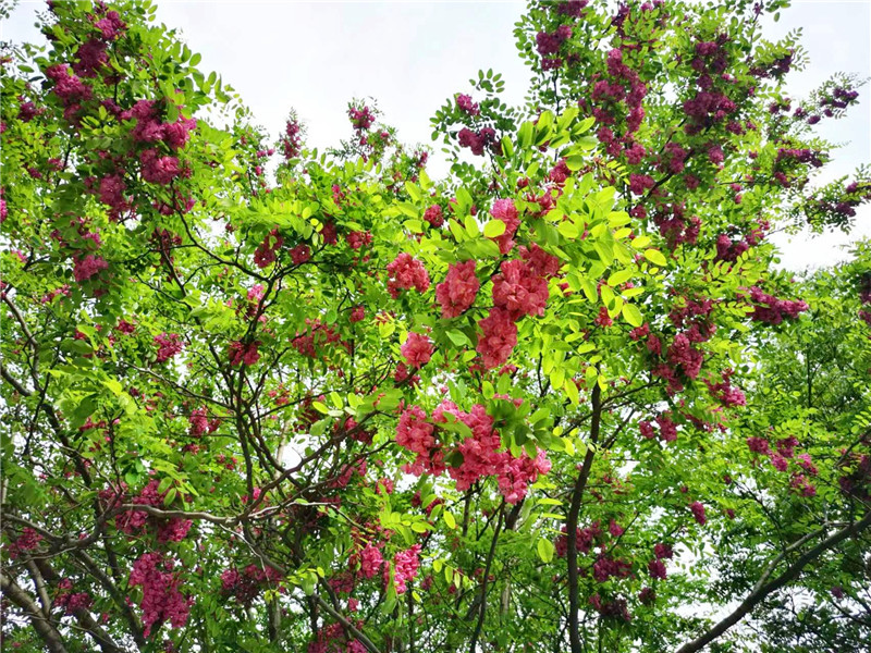 “槐林五月漾琼花,郁郁芬芳醉万家。”眼下,在周口滨河公园,红色的槐花怒放,芳香四溢,惹人心醉。阳光下,一串串、一簇簇、一树树槐花随风摇曳,美不胜收。周口日报·周道客户端记者 普淑娟 摄