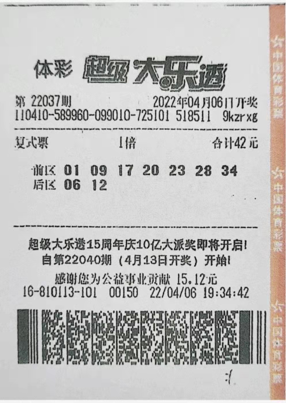 超级大乐透第22037期开奖,前区开出号码“01、09、17、20、28”,后区开出号码“06、10”。李女士凭借这张42元的超级大乐透复式票中得1注二等奖87671元,10注五等奖3000元,10注八等奖150元,合计90821元。