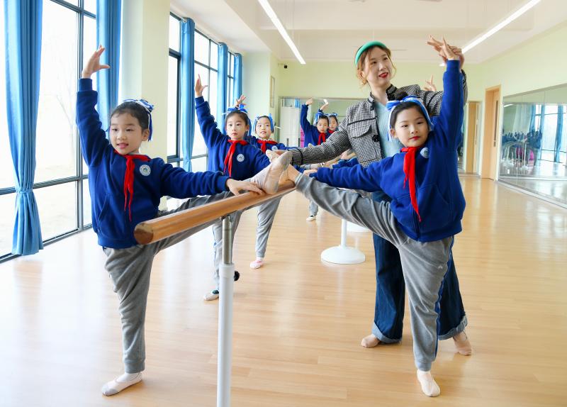 我市全面贯彻落实“双减”政策,促进孩子全面发展、健康成长。全市各学校结合实际,根据学生的兴趣爱好、特长等精心开展棋艺、绘画、书法、舞蹈、陶艺、语言、足球等兴趣课堂,让孩子们在专业老师的指导下学习,丰富了同学们的课余生活,满足了学生多样化发展需求。图为周口天立学校舞蹈课堂的学生在上课。①2
