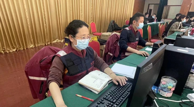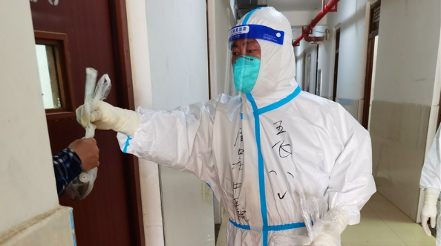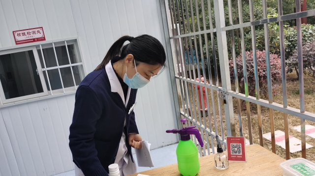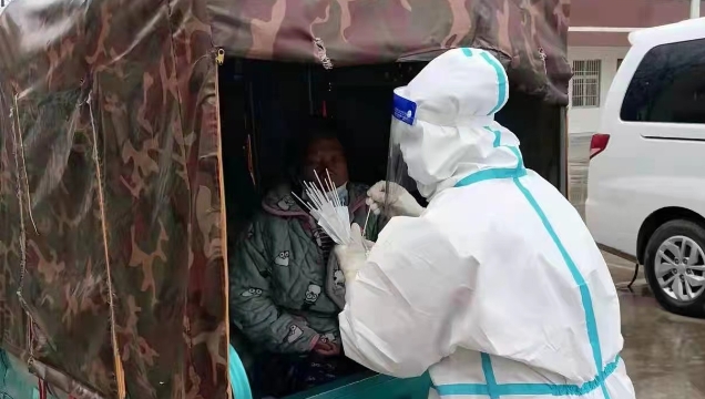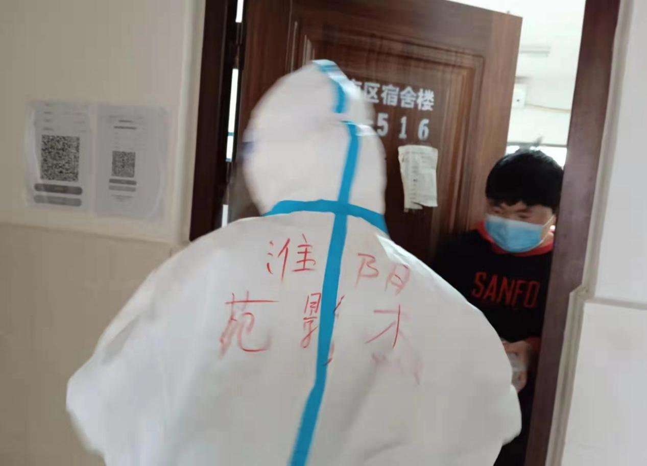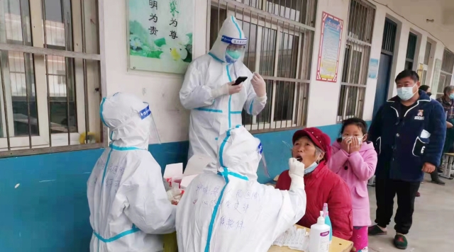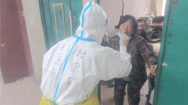 3月25日夜,天空下着小雨,李碧莹和同事们乘车到市卫生健康委员会集合,与其他医院的50多名同仁一道,凌晨4点从周口出发,早上7点到达太康,简单吃点早餐后,便开始紧张的核酸检测采集工作。