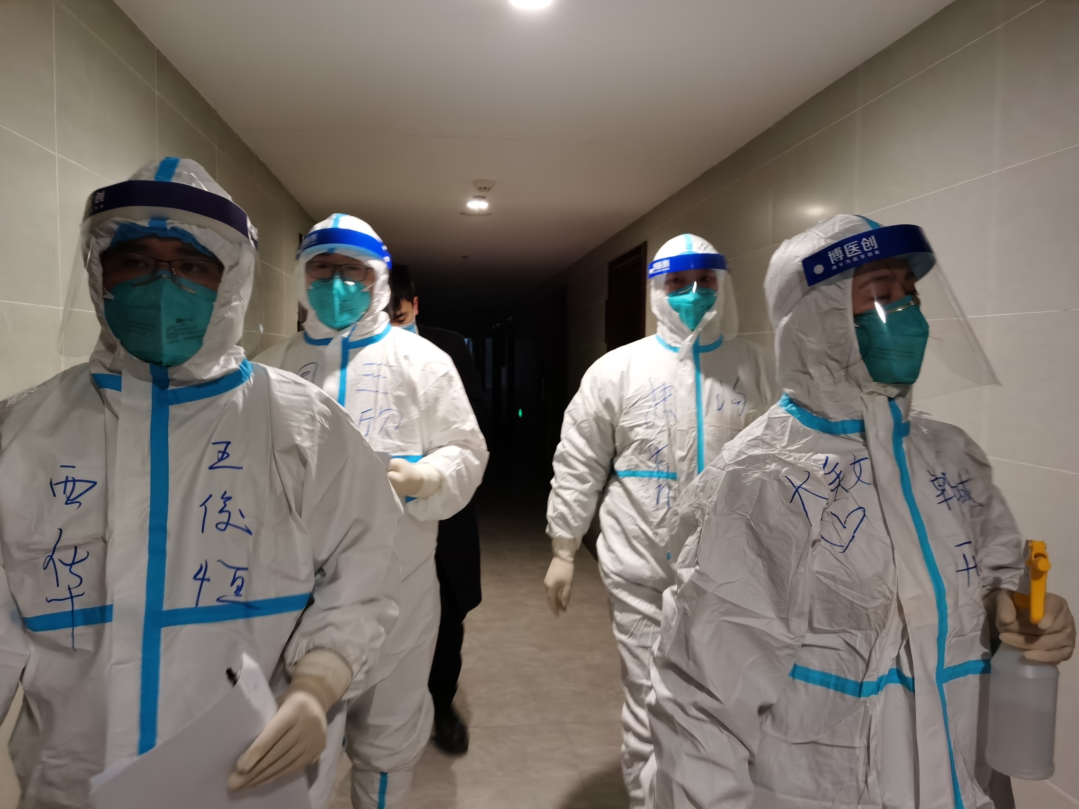 3月25日,作为周口市中心医院第三批支援太康医疗队队长,冀战一带领21名队员全面接管高贤医学观察集中隔离点医疗任务。