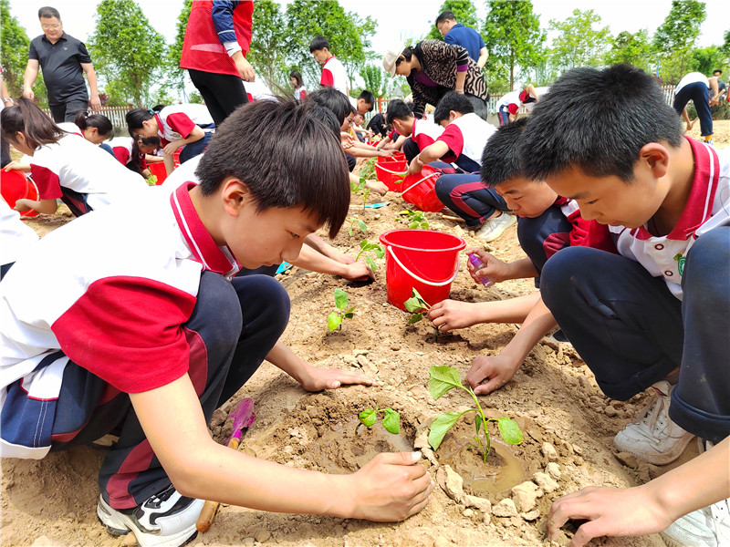 4月27日,在周口市文昌中学劳动教育农业科普基地,一堂让学生期待的劳动实践课如期而至。据了解,“双减”以来,该校坚持教育与劳动相结合,近期又在校园里开辟出“小农场”,让学生在劳动中体验种粮种菜种树的快乐,使学生树立正确的劳动观、养成热爱劳动的习惯。周口日报·周道客户端记者刘华志 摄