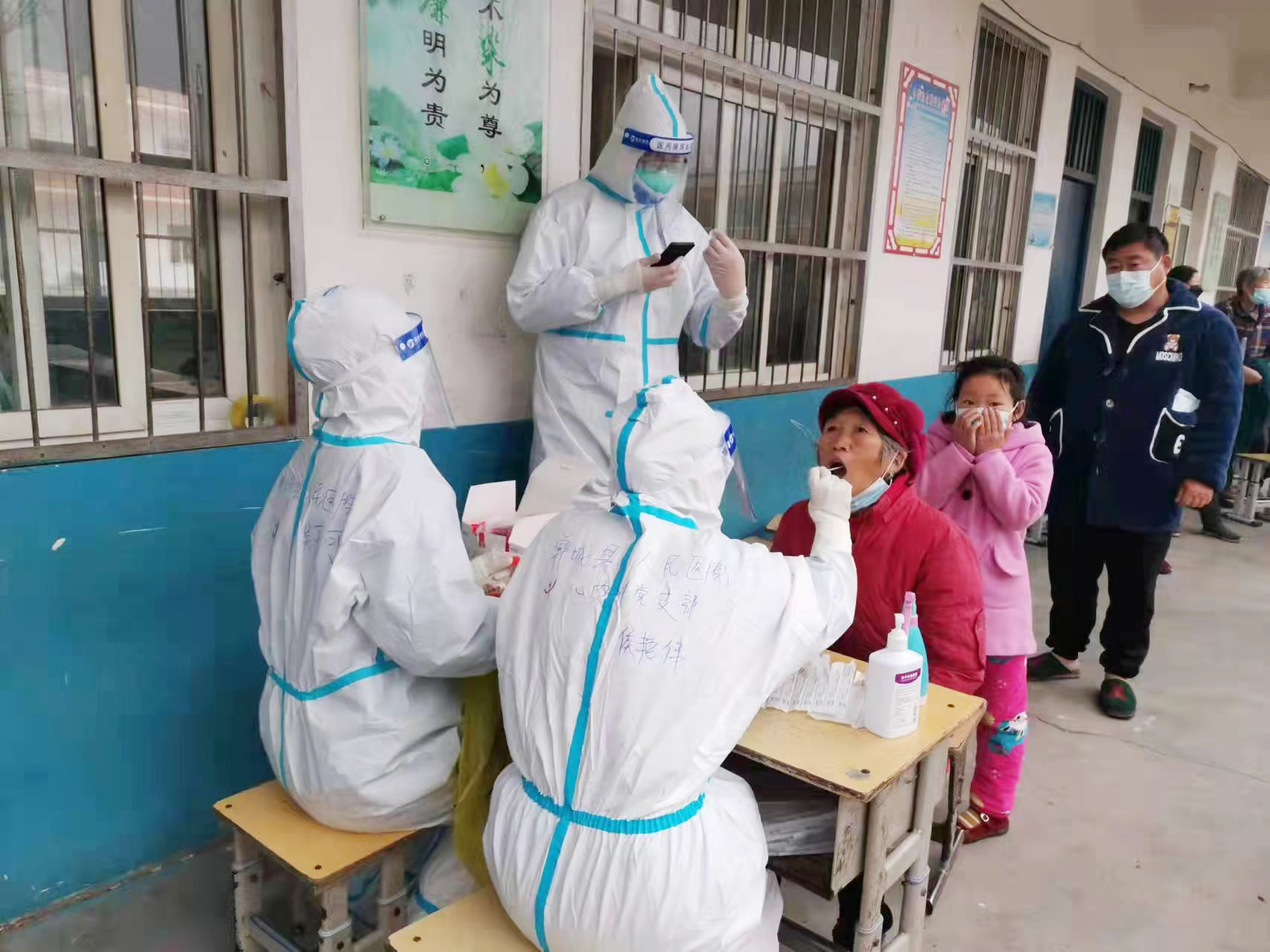 2022年3月23日,太康疫情形势严峻,为响应县委、县政府号召,医院火速征集人员前去支援。她毫不犹豫主动申请前去支援。在太康支援期间,她每天入户为封控区村民采集核酸,从没有抱怨苦和累。在采集任务结束后,作为第八小组组长,侯艳伟还带领着她的组员利用短暂的休息时间,为当地的村民及学生培训七步洗手法,并教给他们一些抗疫小知识,受到了当地群众的一致夸赞。