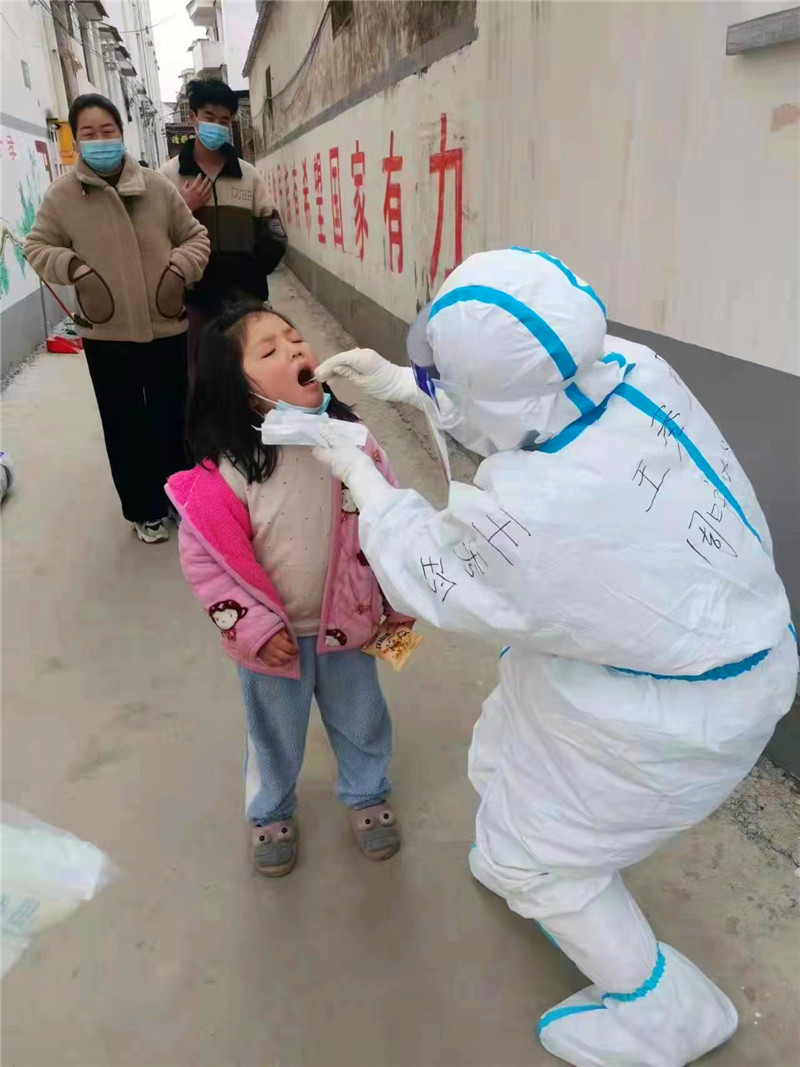 在太康战“疫”中,第二医疗队执行的是封控区核酸采样任务、应急核酸采样任务,并兼做初筛阳性患者复核采样工作。在这披星戴月的14天里,王秀玲每天直面病毒,不分昼夜,转战于20多个封控区,穿梭在人人避之不及的地方。她和队员们每天手携采样包、身穿防护服,哪里有需要就到哪里去,以冲刺的姿势拼出了核酸采样的“加速度”。14天共入户核酸采集样本8万余份,结合在太康工作经验,制定了《周口市中心医院入户核酸采集步骤和流程》,受到了上级领导的充分肯定,并被全市各地疫情防控指挥部推广实施,为有效阻击疫情蔓延贡献了周口市中心医院的智慧。③10
