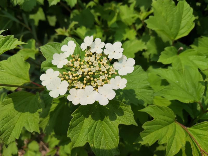 据了解,天目琼花是一种灌木属落叶乔木,白花成团状,像手帕浮在树叶上似雪花一样。秋天叶子枫红,树上挂满红色的叶实,别致可爱,嫩枝、叶、果实皆可入药。