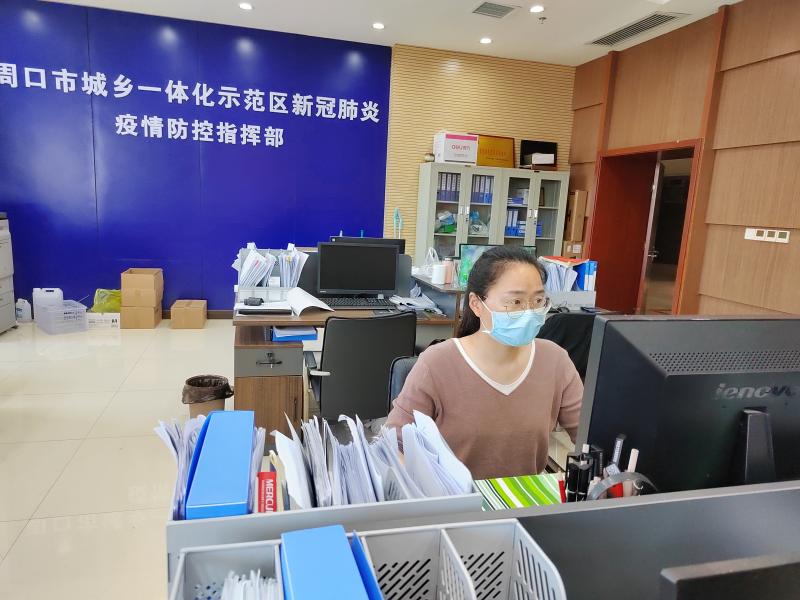 5月4日,记者在周口东新医院核酸检测点见到了全副“武装”的王琳,她坐在核酸检测点的核酸检测报告打印岗位上,身穿防护服,认真细致为需要帮助的群众打印报告。“大到车辆安排,小到口罩发放、体温计调配等防护物资保障都要协调统筹,一刻也不能停歇,我就想着别有什么地方落下了。安排好一切后,我回到医院,同事们都前往全员核酸检测一线了,这里人手不太足,我顶上。做好后勤保障工作,解决一线医护人员的后顾之忧是我的责任和义务。”王琳说。