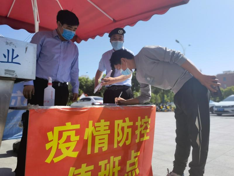 姬祥(左一)在疫情防控值班点