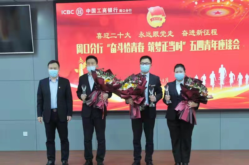 “五四”青年节前夕,工商银行周口分行召开“奋斗恰青春 筑梦正当时”青年员工座谈会,对各岗位涌现出的青年岗位明星进行表彰,20余名青年员工参加座谈会。