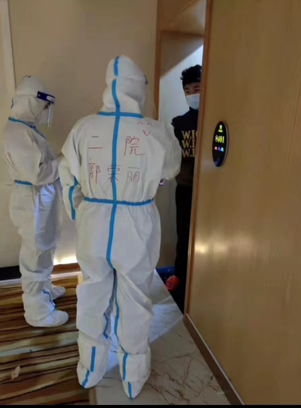 2022年3月22日太康县出现疫情,作为一名抗疫“老人”,面对这样的形势郭荣丽再次投入到抗疫工作中,从3月22日深夜接到通知急需到福港隔离点接收隔离人员,到4月25日所有的隔离人员安全隔离,其间她从未离开过隔离点。