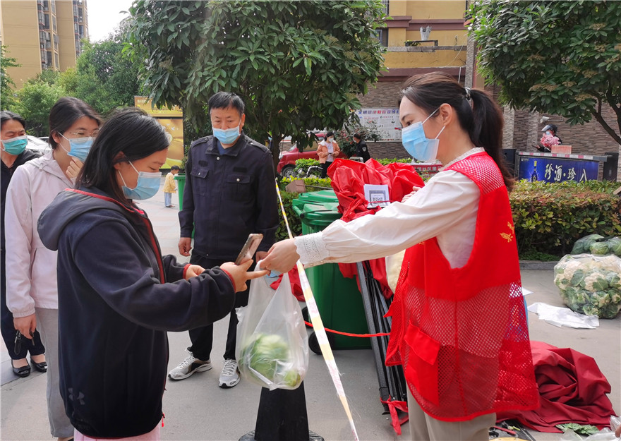 5月8日上午,奥兰天和家园小区的志愿者为小区居民发放蔬菜。据介绍,为解决疫情防控期间居民购买蔬菜不便的问题,景园社区干部张三波购买黄瓜、萝卜、西葫芦、花菜等蔬菜捐赠给奥兰天和家园小区,由志愿者将蔬菜分装后发送到居民手中。②7