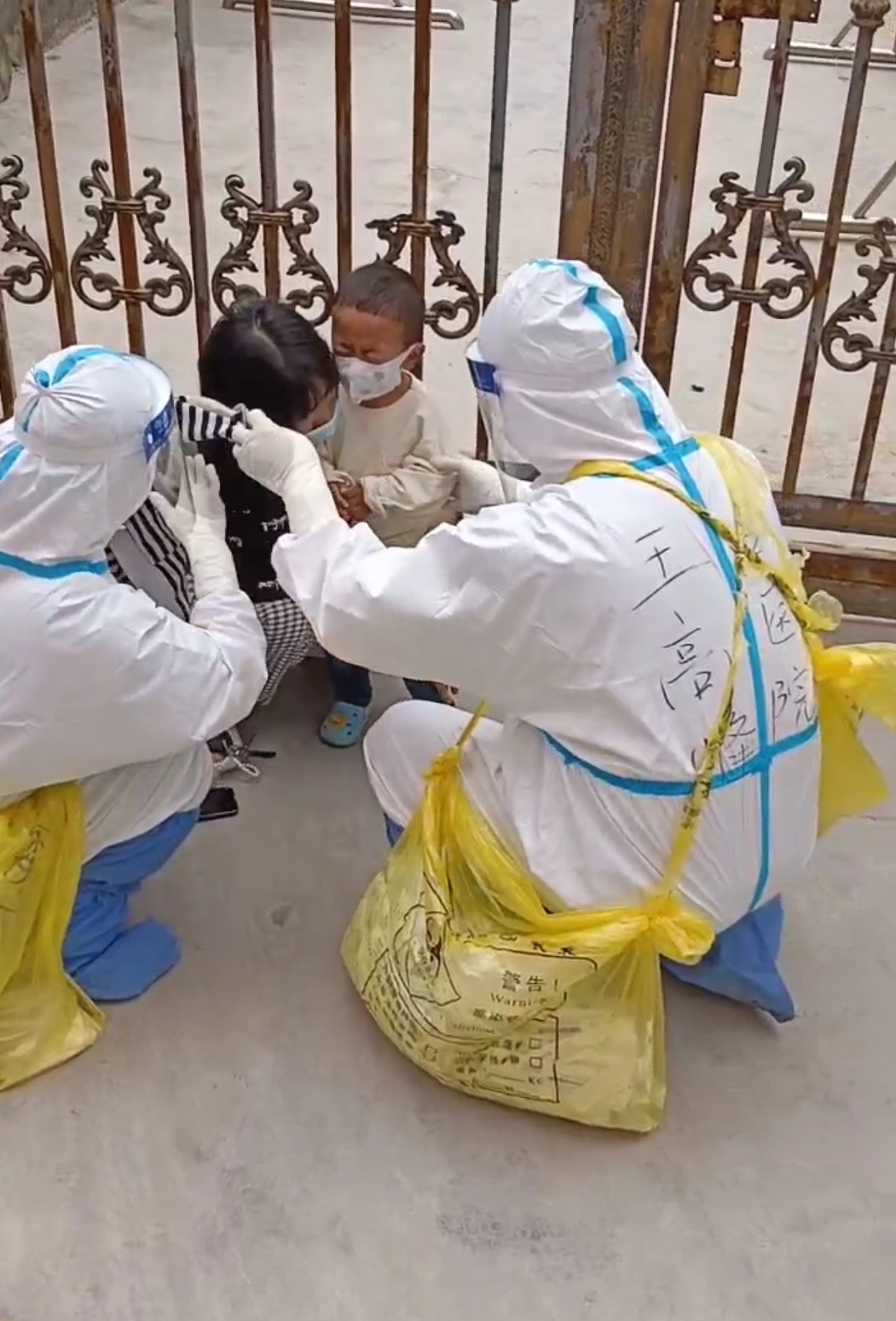 5月8日,郸城县中医院核酸检测人员继续奔赴一线进行核酸采样工作。当日12时许,骨科医生王高峰、手术室护士于瑞由孔桥社区工作人员带领至王庄为社区居民进行核酸采样,王高峰刚穿好防护服准备开始工作,一位女士急匆匆地跑过来问:“我孩子的胳膊脱臼了,你们是医生,能不能帮忙接上?”