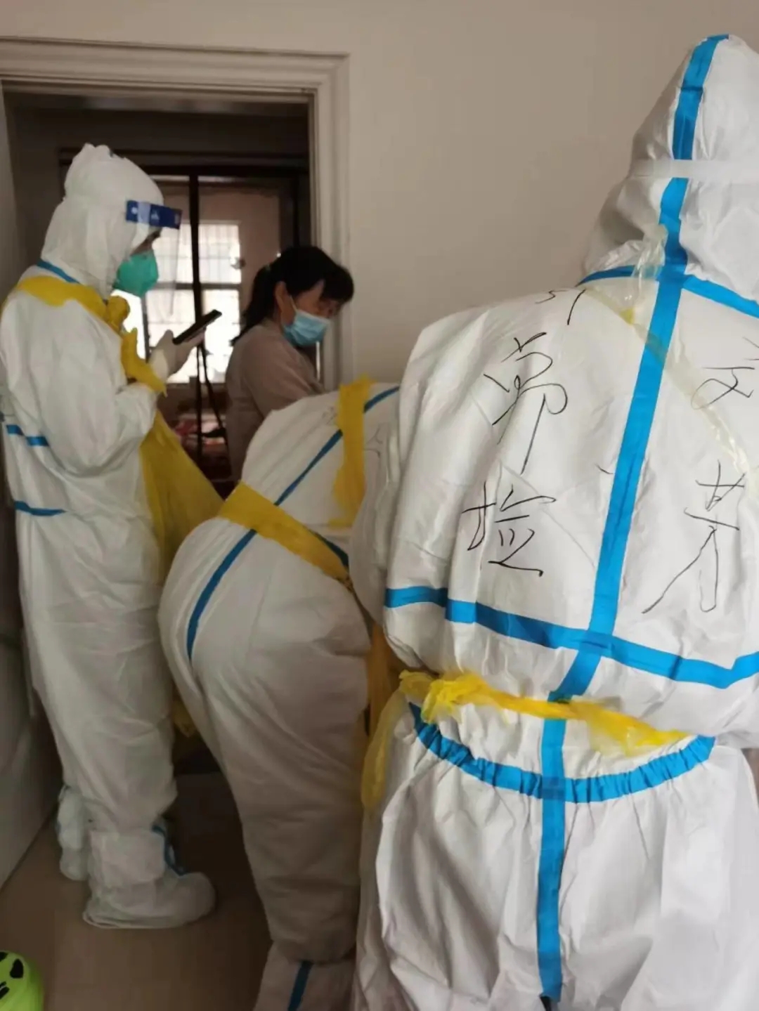 快1点时,我们来到一户人家,那家的大爷忙回屋拿来面包和饮料,说我们该吃饭了。我们说,防护服挺贵的,弄破就可惜了,都做完再换衣服吃饭。要去下一户时,大爷又捧着面包和饮料叫住我们:“这会儿不能吃,先拿着,啥时候能吃饭再吃,别饿着。”那一刻,好感动。