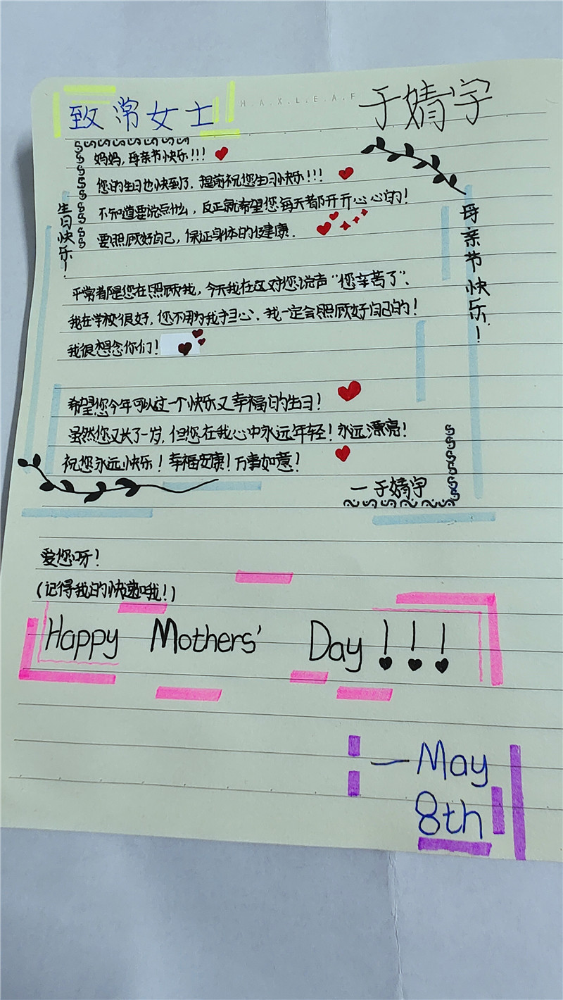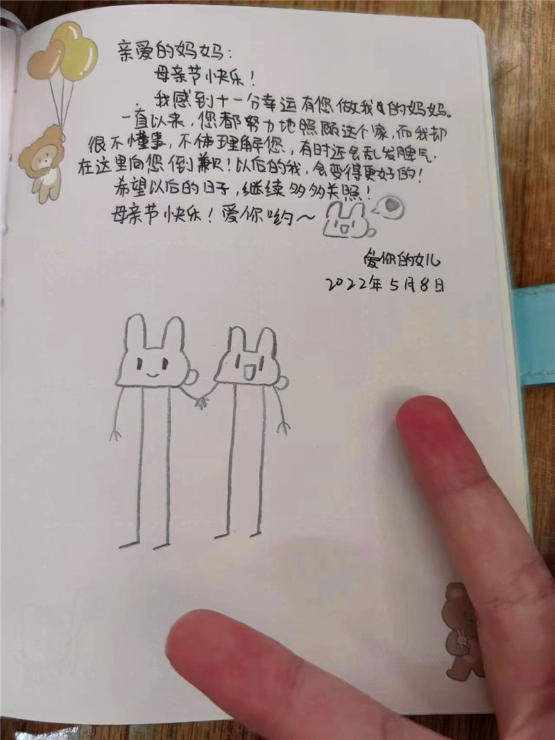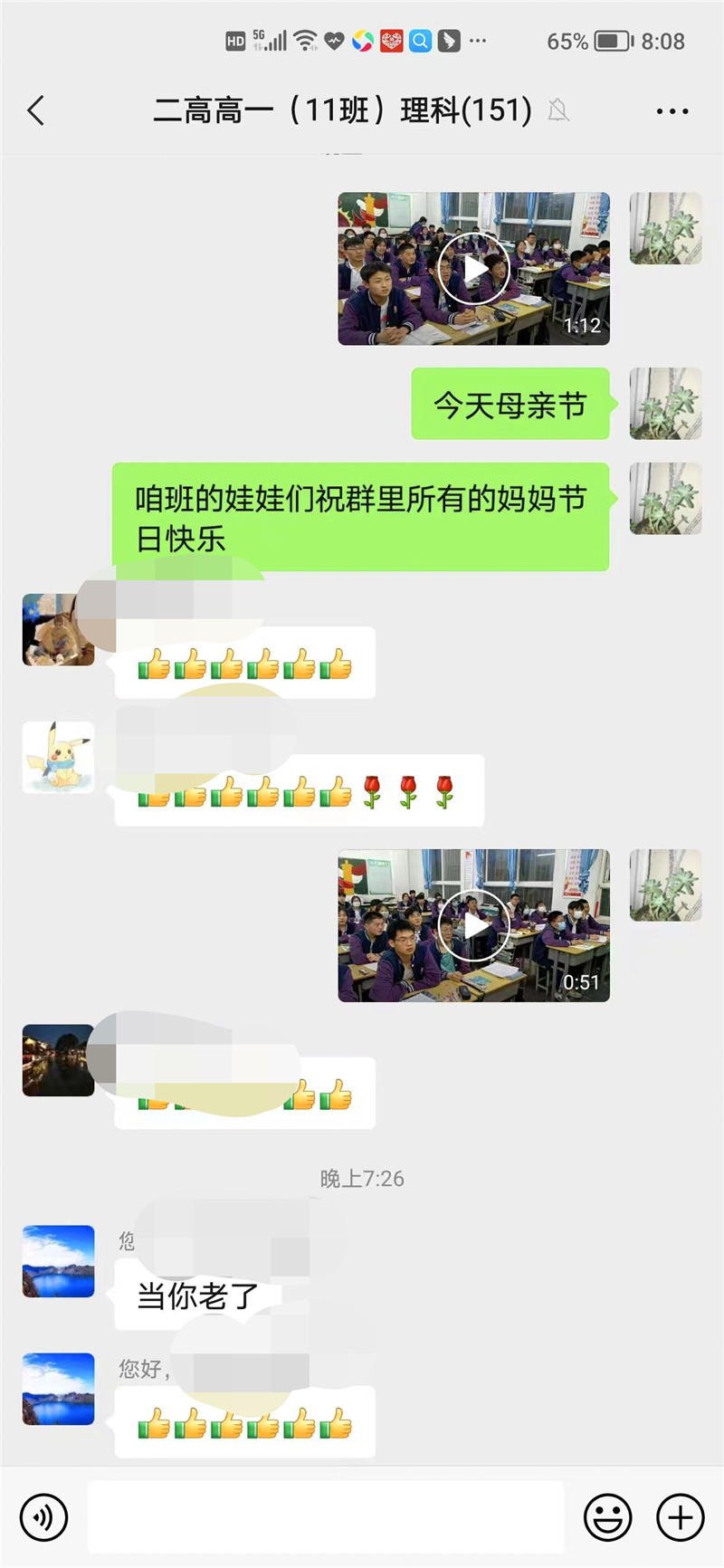 “目前学校处于封闭管理状态,学生们无法当面表达对母亲的爱,为了把这份爱及时送达,母亲节当晚,利用休息时间,各班班主任把每位学生的‘告白’以微信的形式一一发送给了每位家长。”周口市第二高级中学相关负责人介绍,通过此次活动,给学生们搭建了感恩母亲、回报母亲的交流平台,增强了学生们对母亲养育之恩的理解,进一步拉近了学生与家长之间的心灵距离。③5
