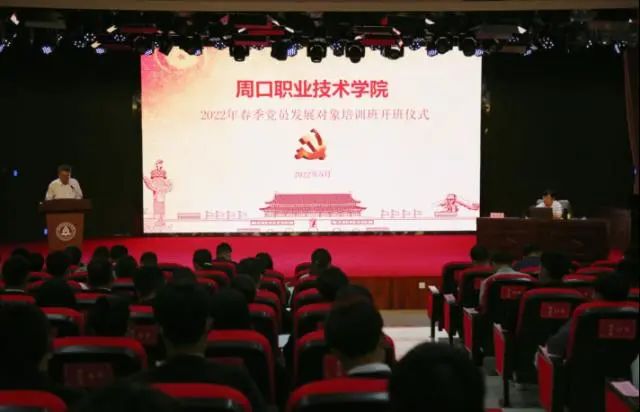 近日,周口职业技术学院2022年春节党员发展对象培训班开班。学校党委书记刘士欣、副书记赵振然,各二级学院党总支书记,开元校区学生支部书记和本支部党员发展对象开班仪式。