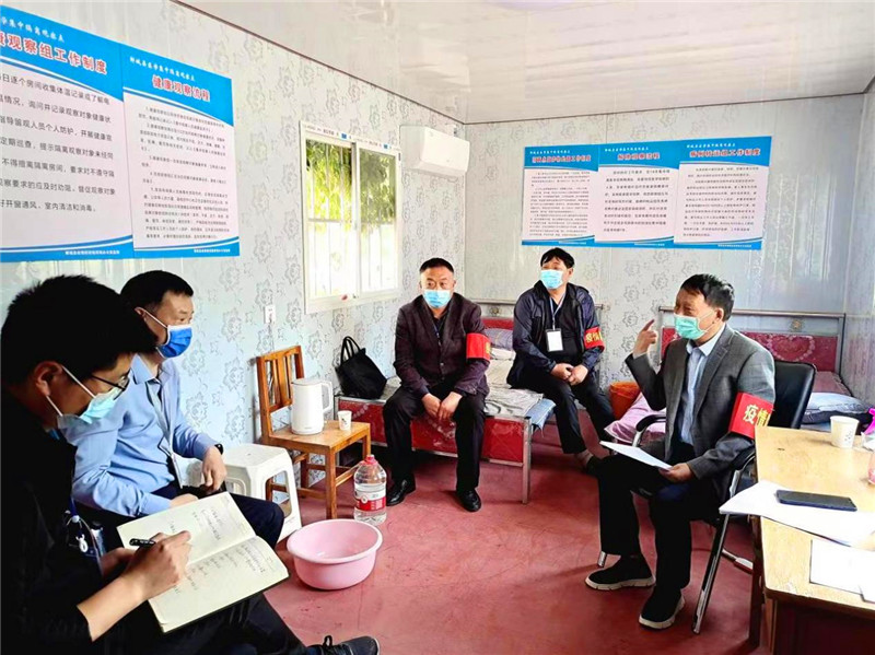 “隔离间内的中央空调的通风口是否都逐一封实了?今天一脱、二脱新增的监控安装好了吗?5号新进返乡隔离的那位76岁老人身体啥情况,吃住都适应了吗?县疫情防控工作指令还有哪些没有落实到位?”……5月8日早上7时,在县西区隔离点临时指挥部,副指挥长、县农业农村局局长柴建振正在仔细询问工作人员各项工作的落实情况。返乡人员医学隔离观察管控是“外防输入、内防反弹”总策略的重要一环,是阻断疫情传播蔓延的最后一道防线,是抗击疫情的最前沿。他要求工作人员一定要管细管严,管出成效,同时也要对隔离人员贴心服务,暖心关怀,用真心真情真意,换得隔离人员的理解与支持,把隔离点建成隔离人员的温馨家园,阻击病毒的安全防护的“红色堡垒”。