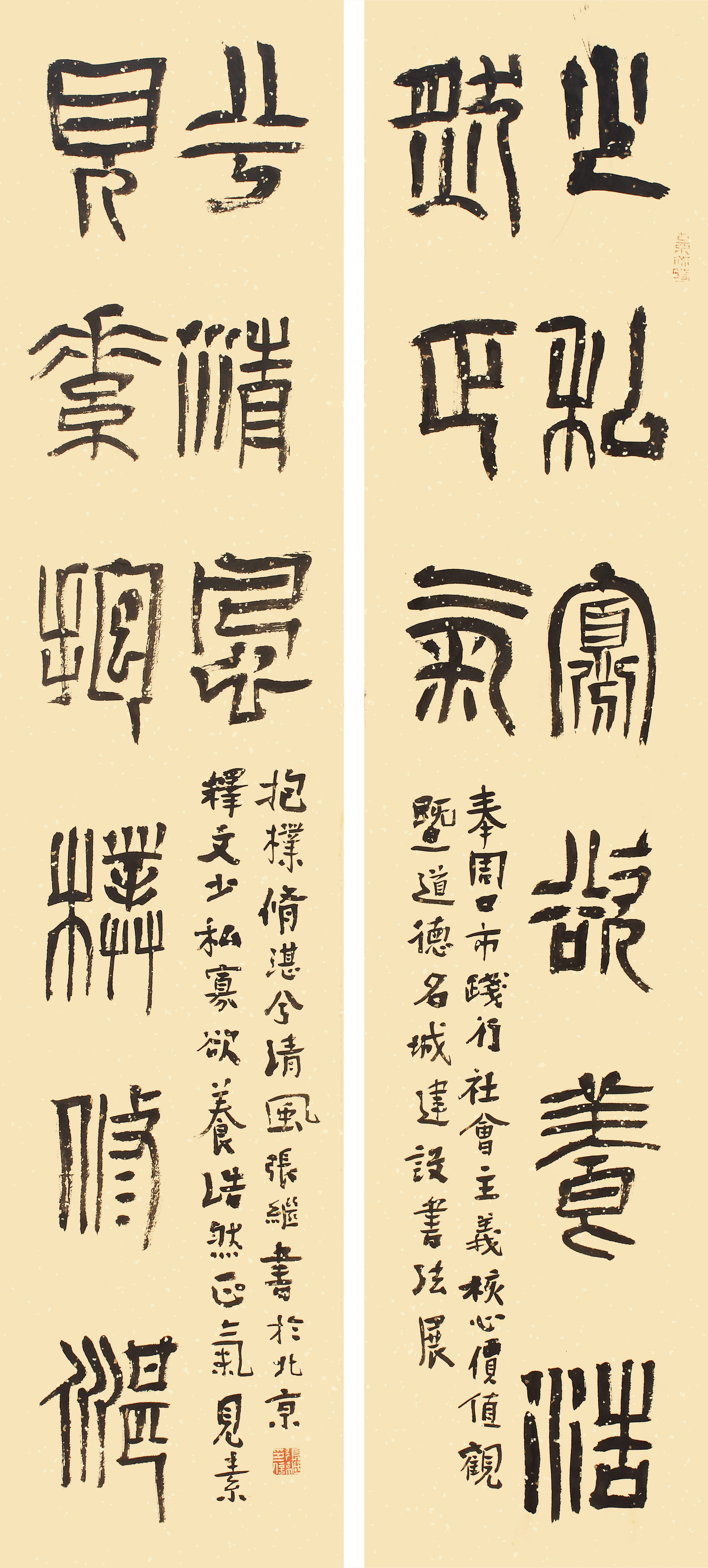 继 中国书法家协会副主席,隶书委员会副主任(对联:少私寡欲养浩然正气 见素抱朴修湛兮清风)