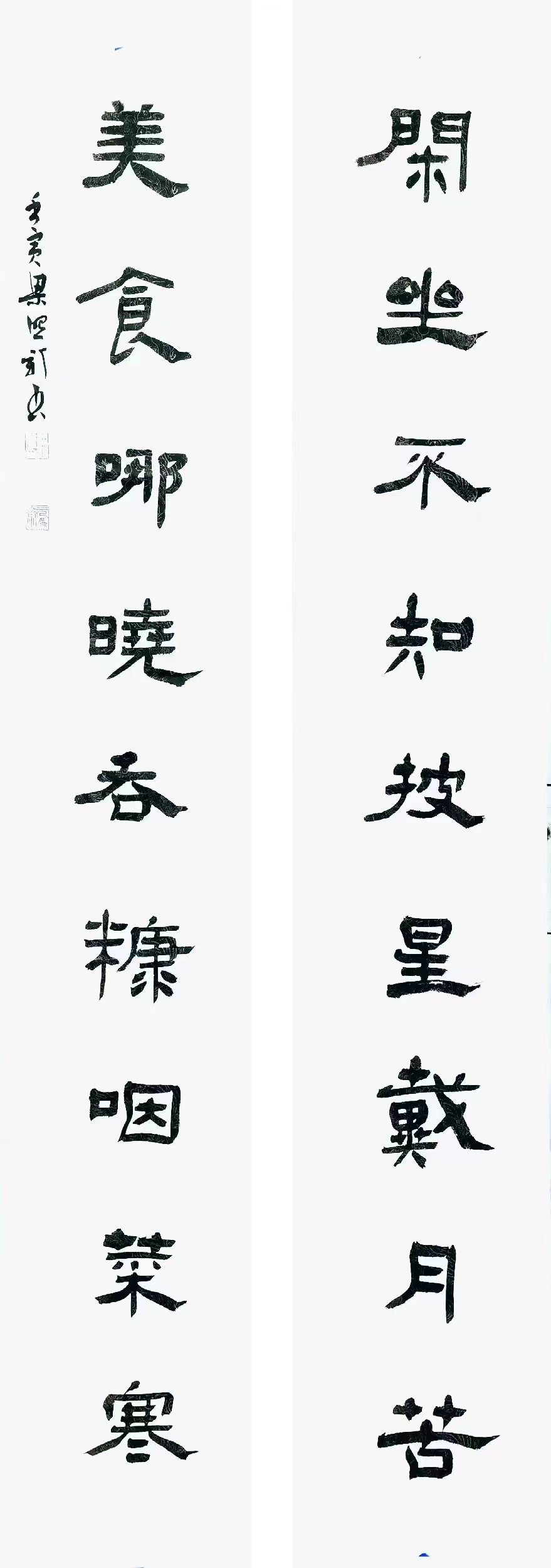 梁照新 中国书法家协会会员,河南省隶书委员会委员,周口市书法家协会副主席(对联:闲坐不知披星戴月苦 美食哪晓吞糠咽菜寒)