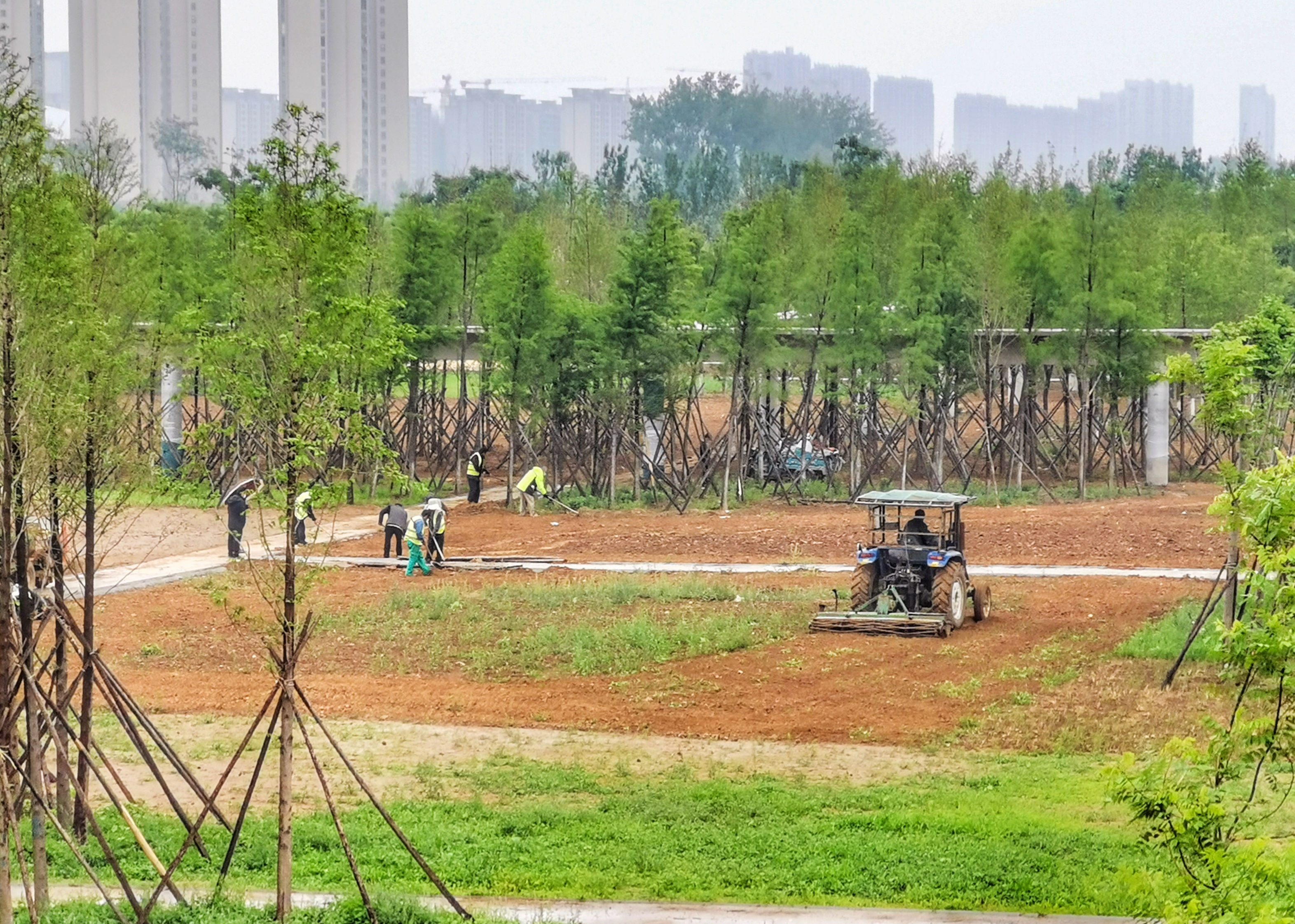 5月13日,园林工人正在工作。中心城区在从严落实疫情防控措施的同时,各行各业有序复工复产 ,居民生活逐步恢复正常。