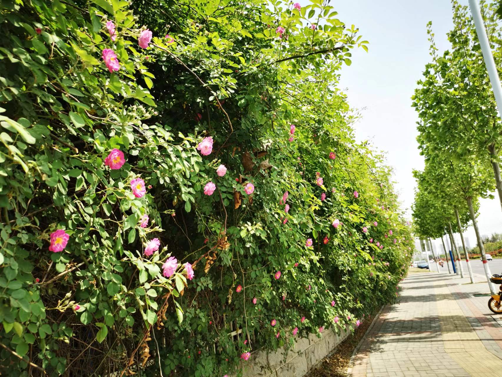 目前,市区周口大道,正值蔷薇花开的季节,花朵缀满枝头在风中舞动,形成醉人的秀美花墙,为整个周口大道带来一抹惊艳的红。③2