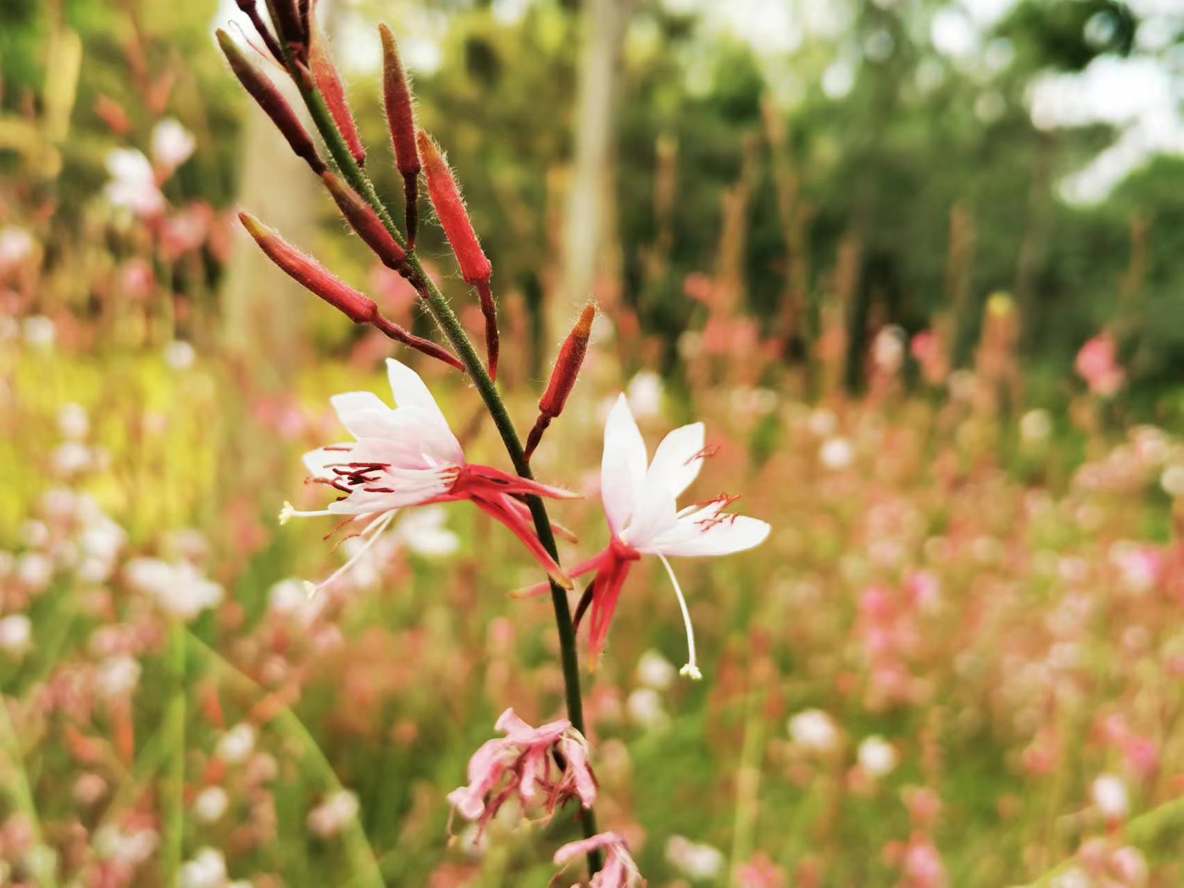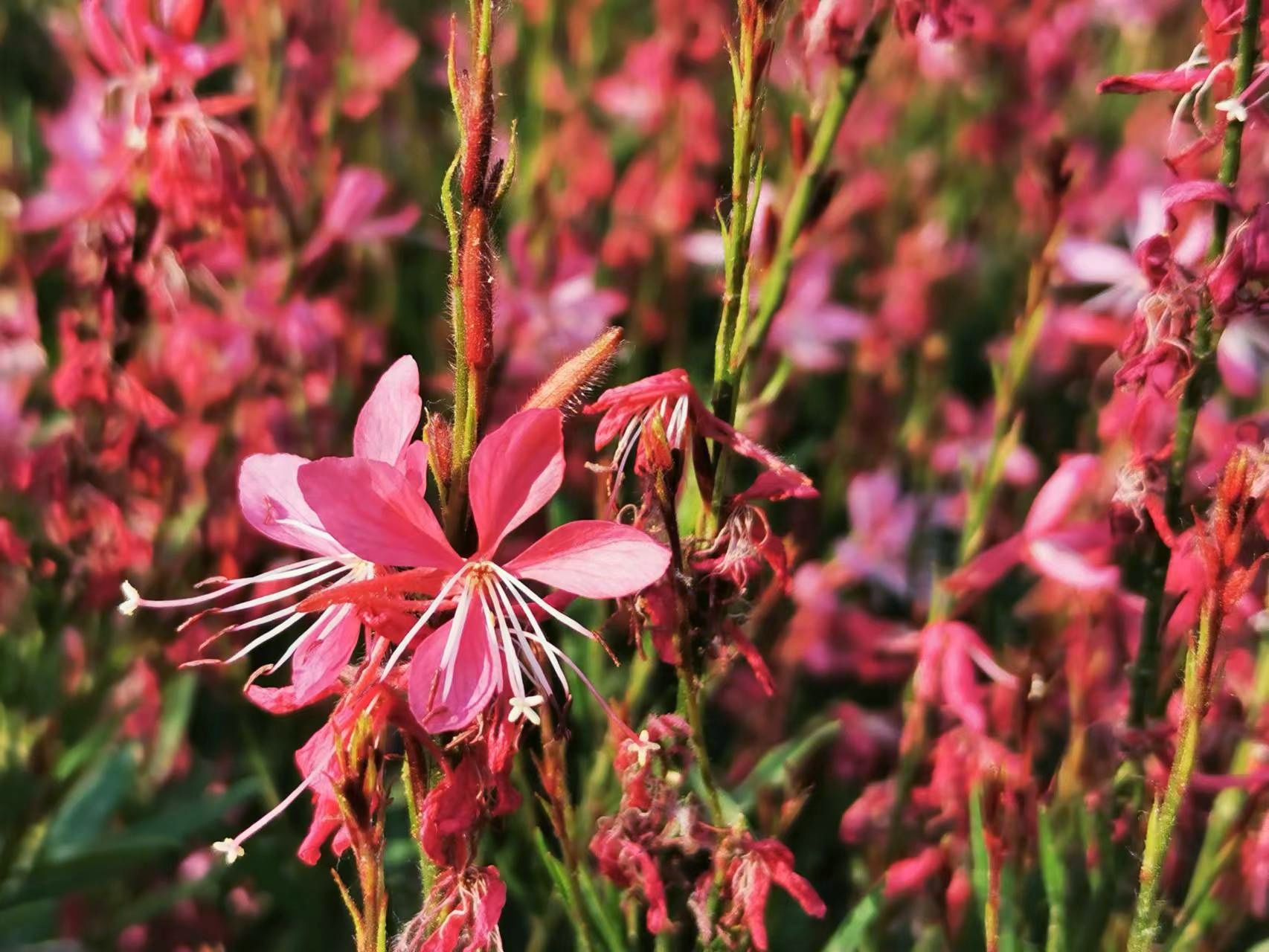 5月20日,记者在滨河公园看到,山桃草花儿盛开,一团团、一簇簇的山桃草让人仿佛置身粉色花海。