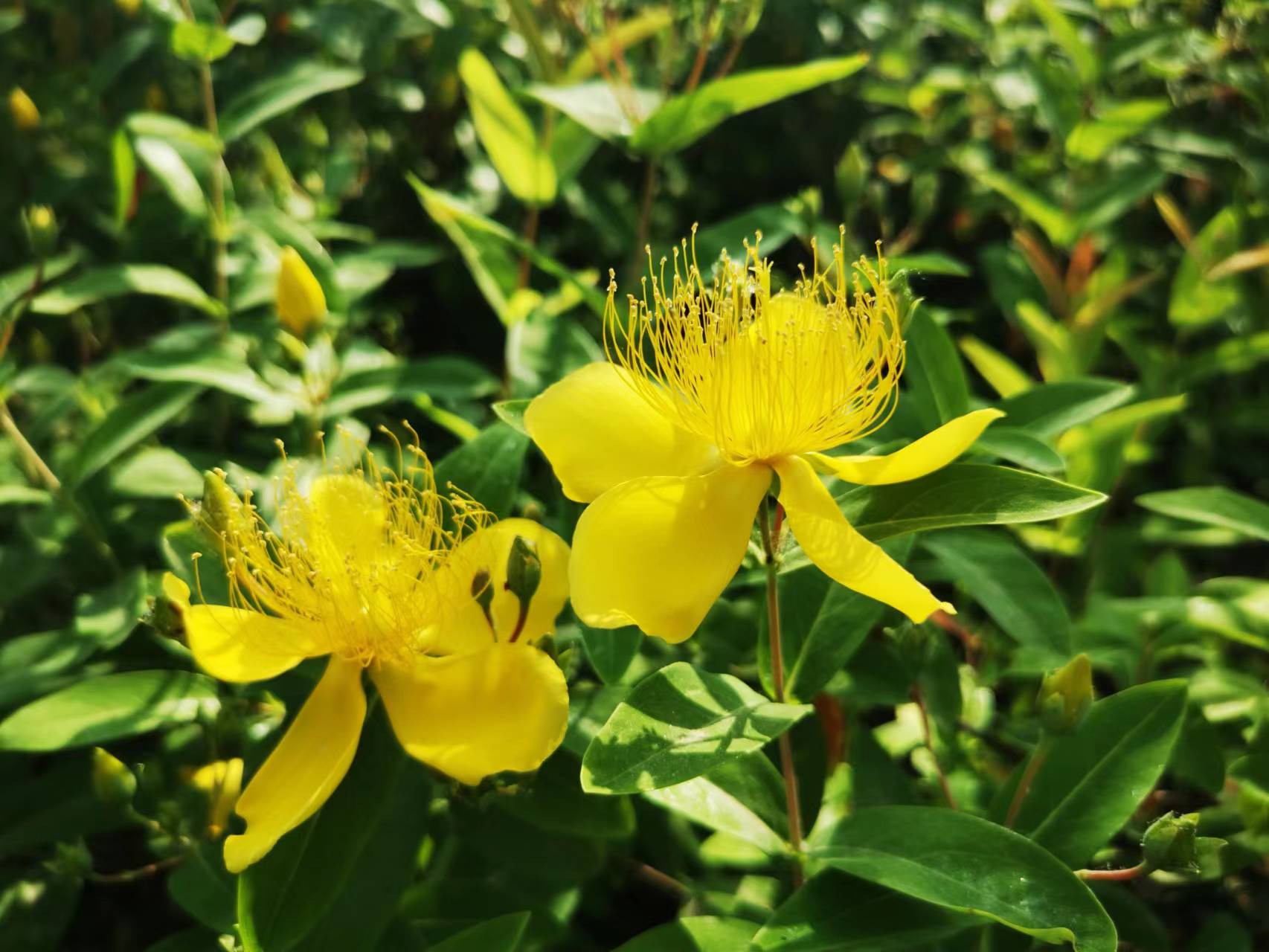 近日,铁路公园的金丝桃已经盛开了,花色金黄,惹人喜爱。金丝桃因花形似桃花且色泽金黄,花丝纤细而长,并有光泽,灿若金丝而得名。